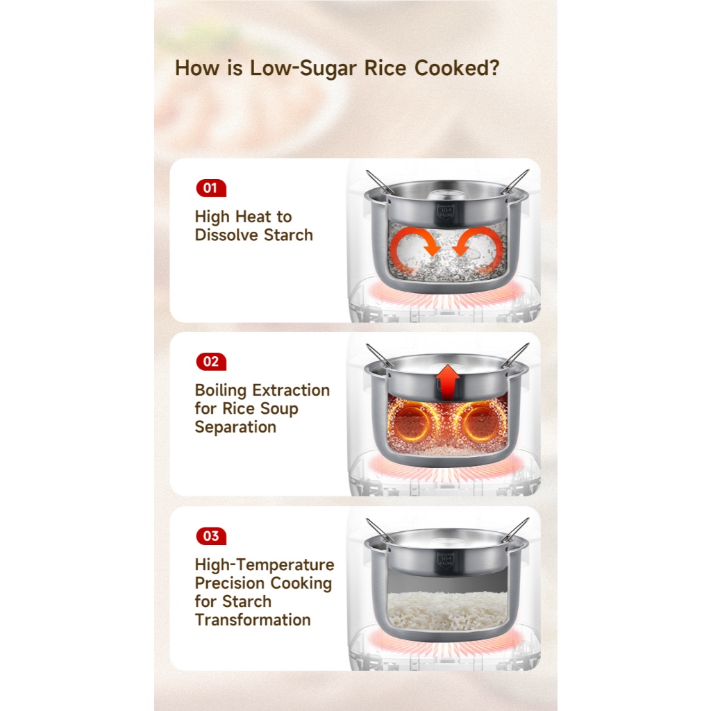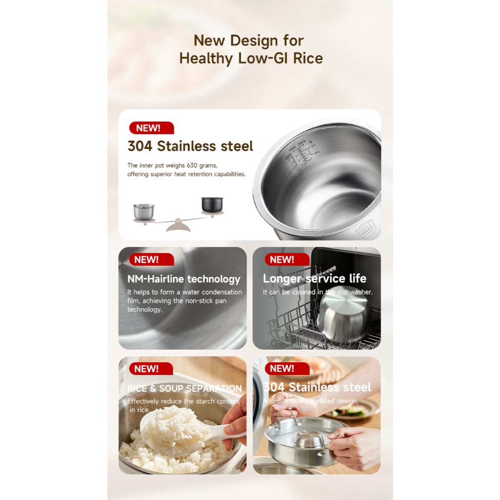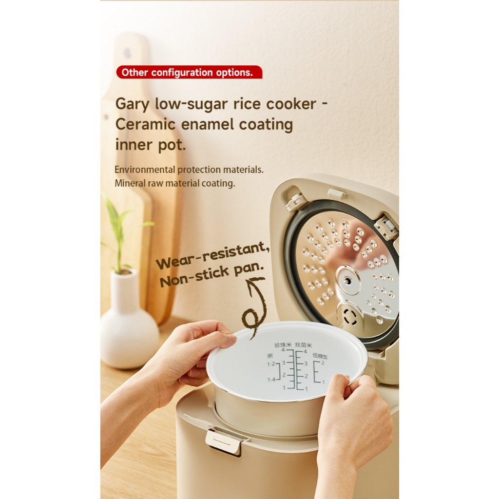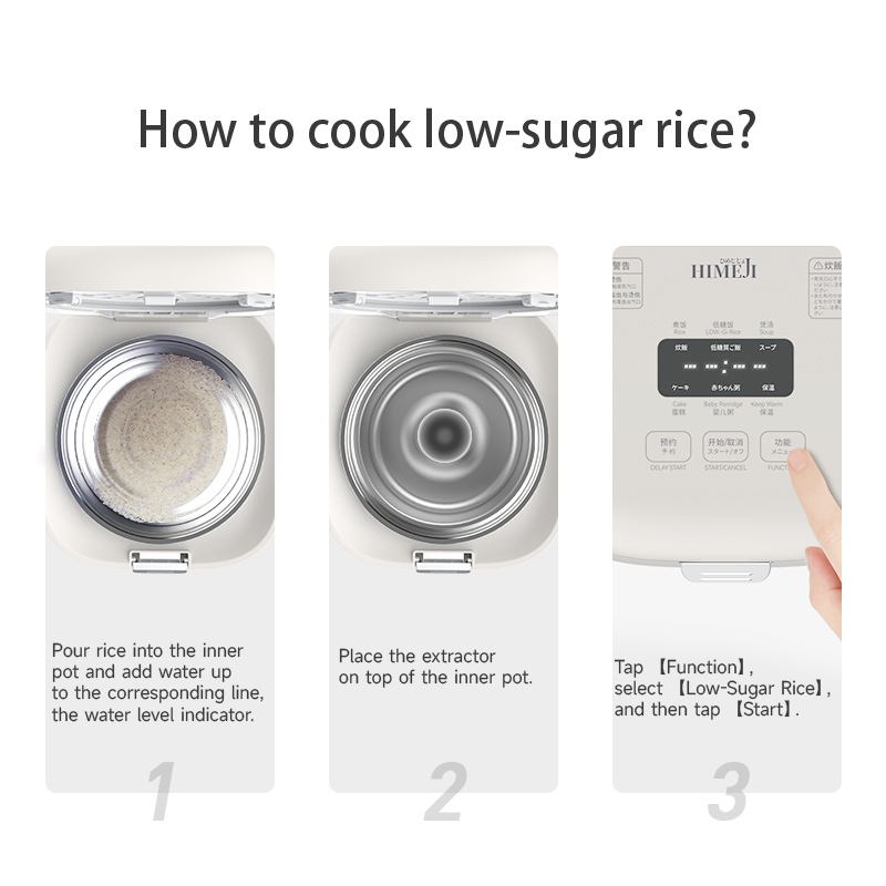HIMEJI White Digital Low Sugar Rice Cooker (1L) -with 304 Stainless Steel Pot