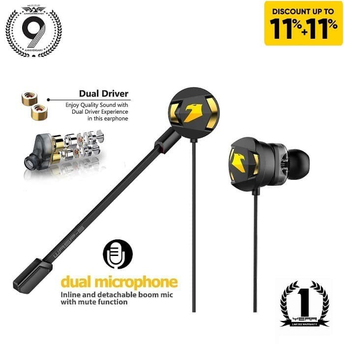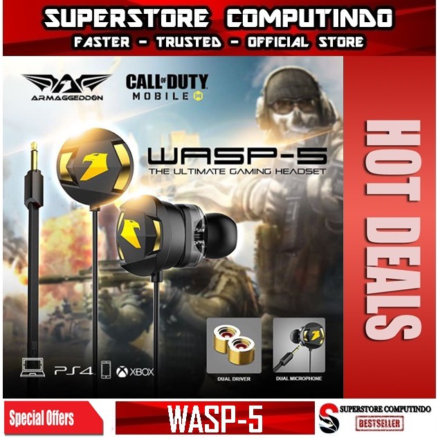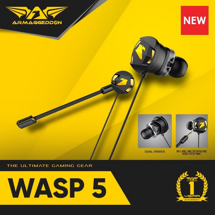 Armaggeddon Headset Mobile Gaming Earphone WASP 5 Dual Mic ULTRA BASS [PUBG/MLBB/PC] 1 Year Warranty