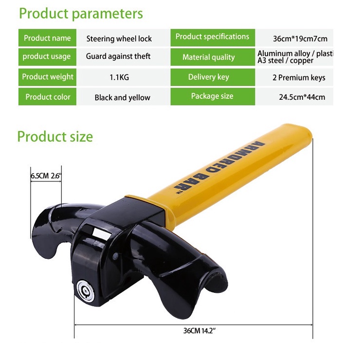 Armoured Bar Steering Wheel Lock, Universal Car Anti-theft Steeringwheel Security Heavy Duty Stainless Steel