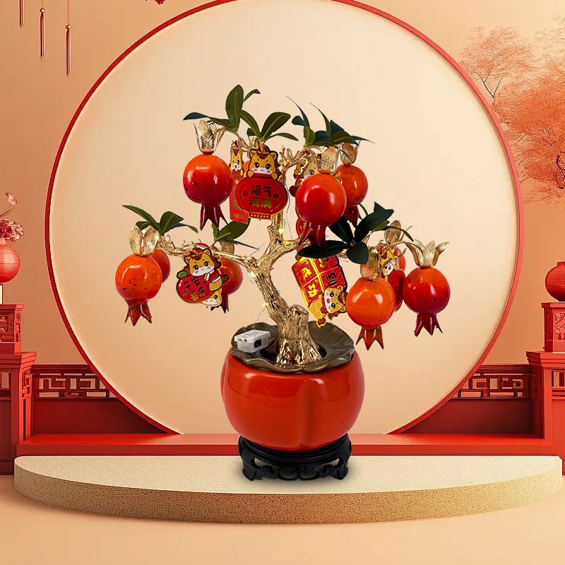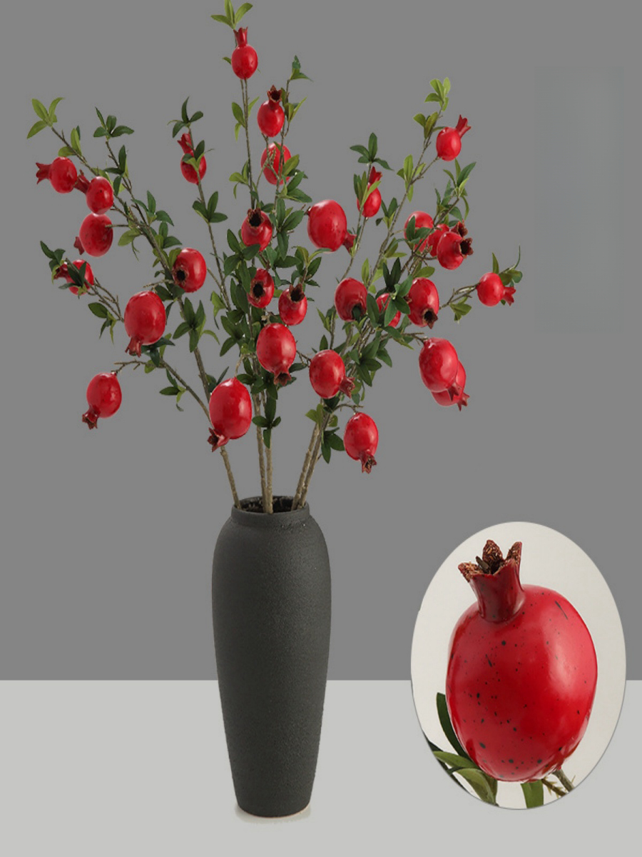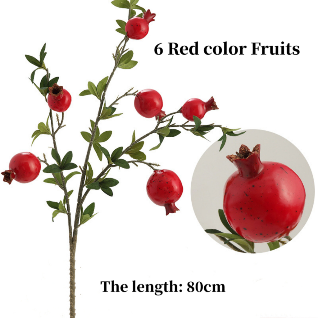 Artificial Pomegranate Branch 6 Fruits Bouquet Wealth Fruit Plastic Fake Plants Home Christmas New Year CNY Decoration