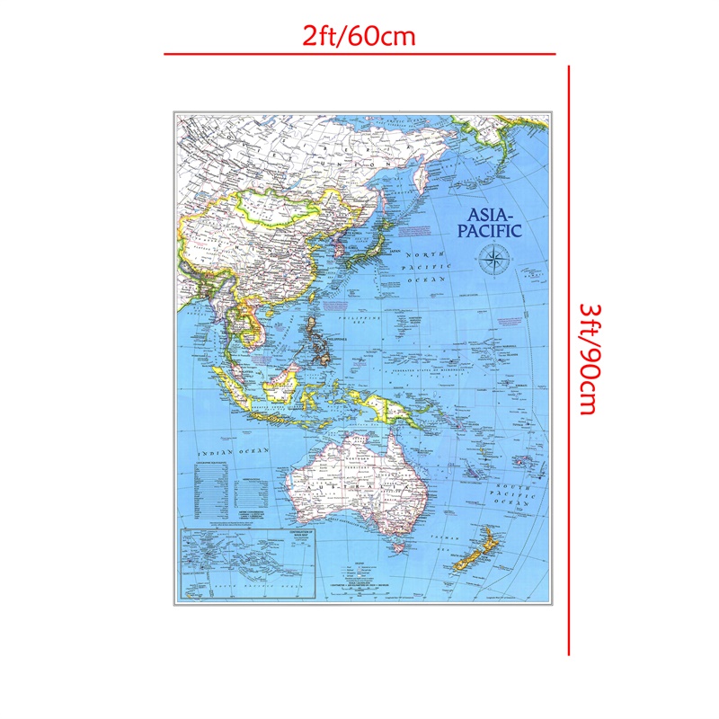 Asia-Pacific Map Large Map Poster Prints Wall Hanging Art Background Cloth Wall Decor