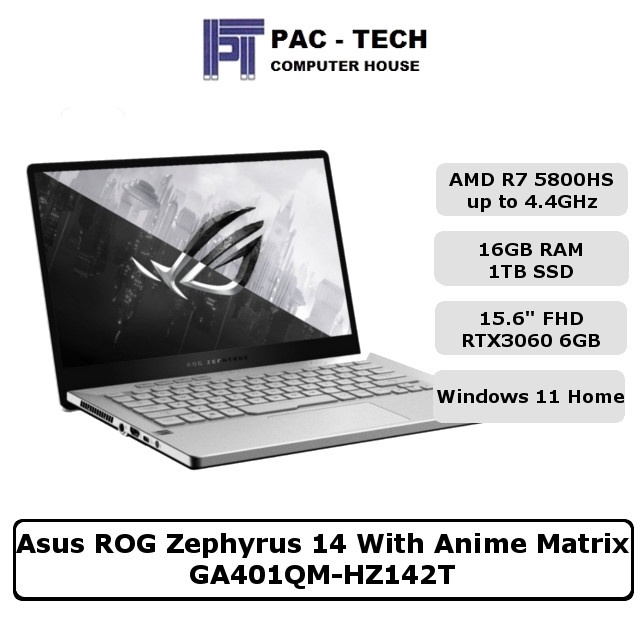 Asus ROG Zephyrus G14 Anime Matrix GA401QM-HZ142T|R7 5800HS | 16GB RAM | 1TB SSD | RTX3060 | 14" FHD | Windows 11 Home |
