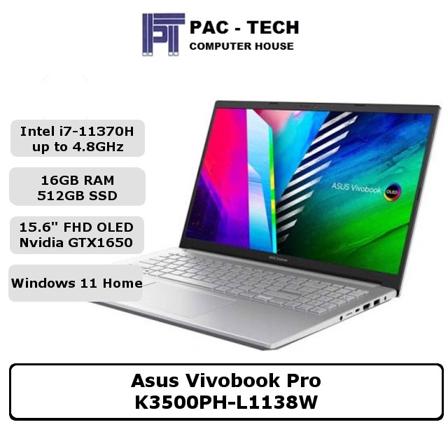 Asus Vivobook Pro K3500PH-L1138W | i7-11370H | 16GB RAM | 512GB SSD | GTX 1650 MaxQ | 15.6" FHD OLED | 2 Year Warranty