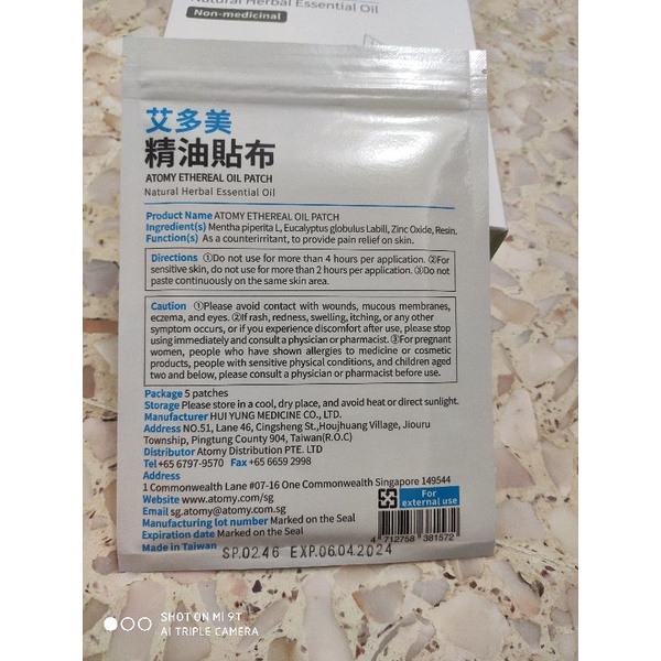 Atomy Ethereal Oil patch/ plaster.