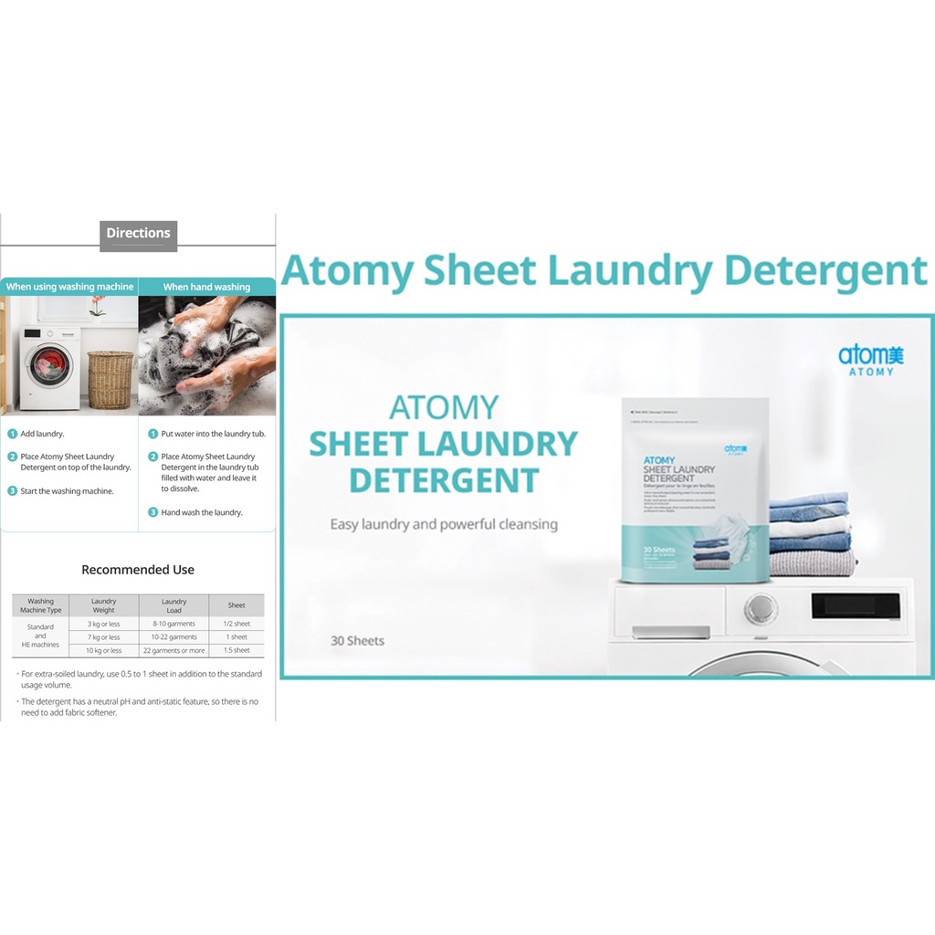 Atomy Sheet Laundry Detergent 30 Sheets - Free Atomy Scrubber