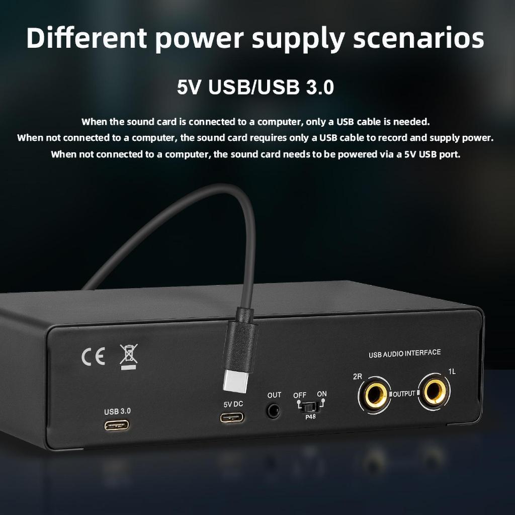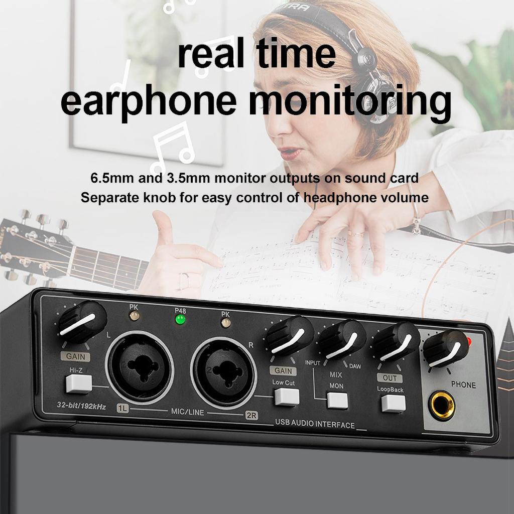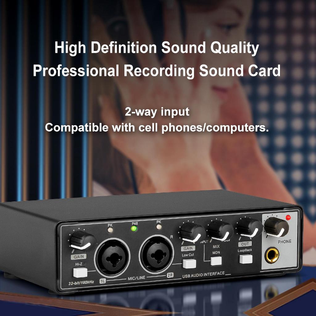 Audio Interface for Recording Portable Professional Sound Card with Loopback Monitor 48V Phantom for Audio Equipment Guitar New