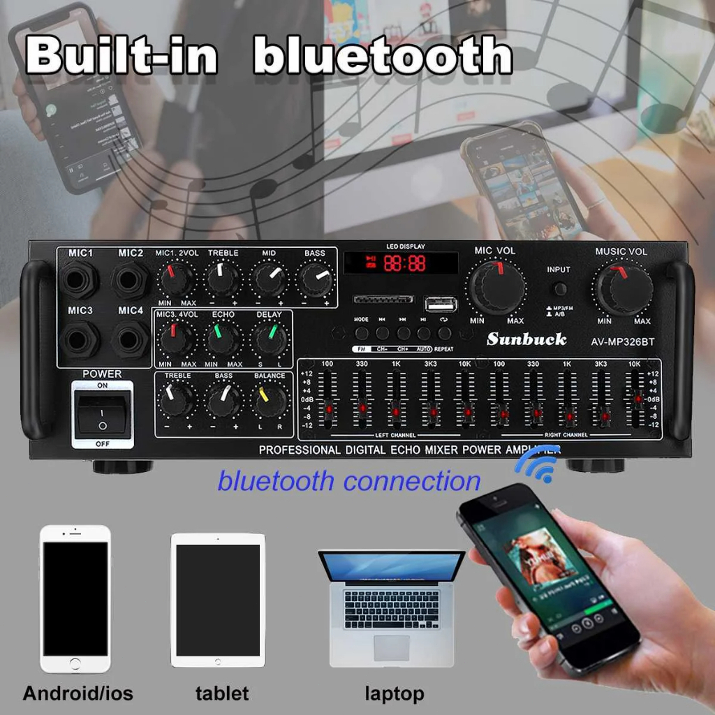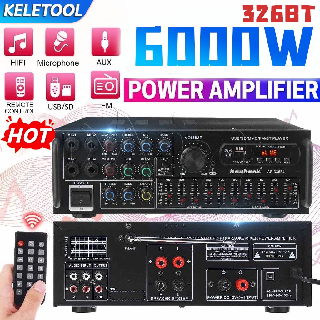 Audio Power Amplifier 5000W bluetooth HiFi Amp Speaker 12V AV Amp Speaker Remote Control For Car Home Square Dancing 2.0 Channel