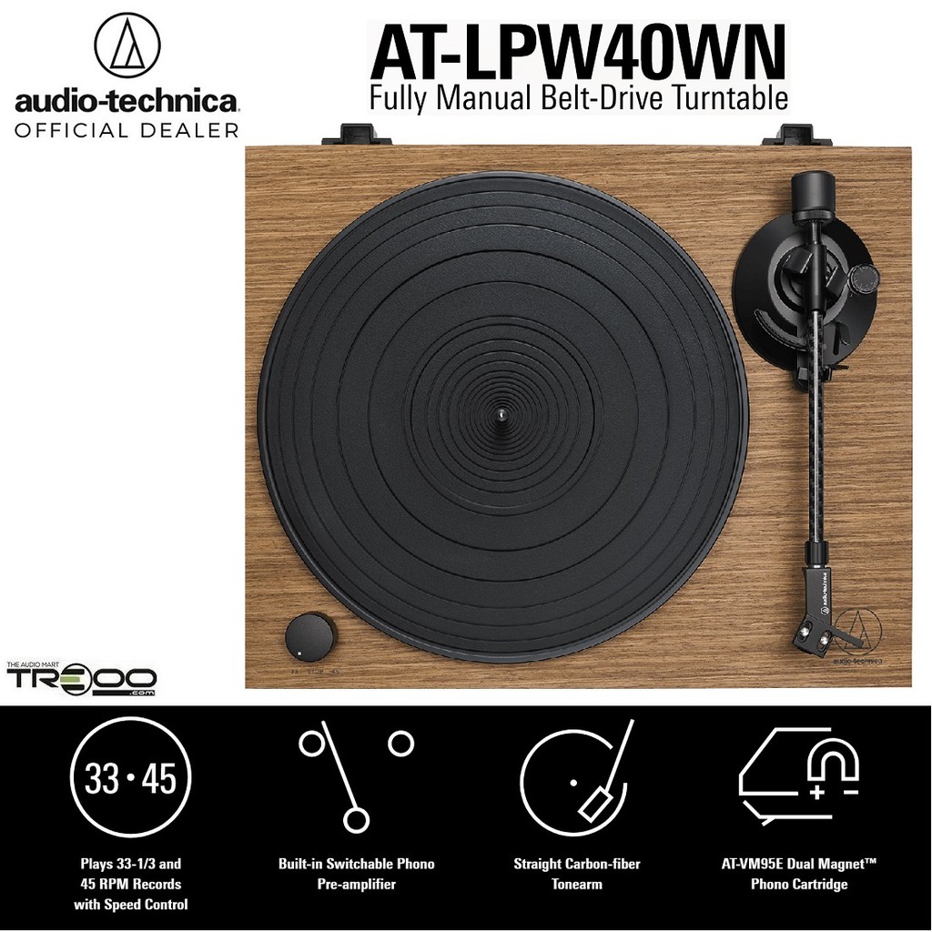Audio-Technica AT-LPW40WN Fully Manual Belt-Drive Wood Stereo Turntable