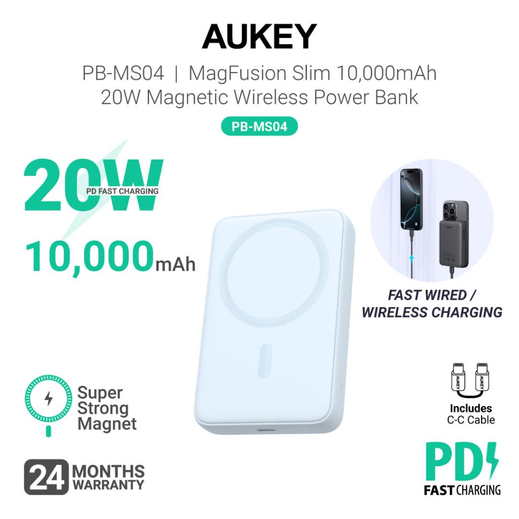 Aukey PB-MS04 10000mAh 20W Magnetic Ultra Slim Wireless Powerbank (24 Months Warranty)