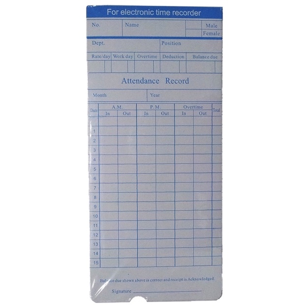 Aurora AC-8 Time Card Attendance Punch Card 100pcs per pack