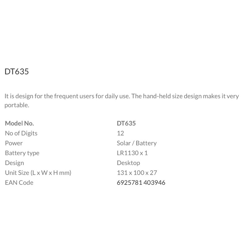 Aurora Calculator 12 Digits Dual Power (DT635)