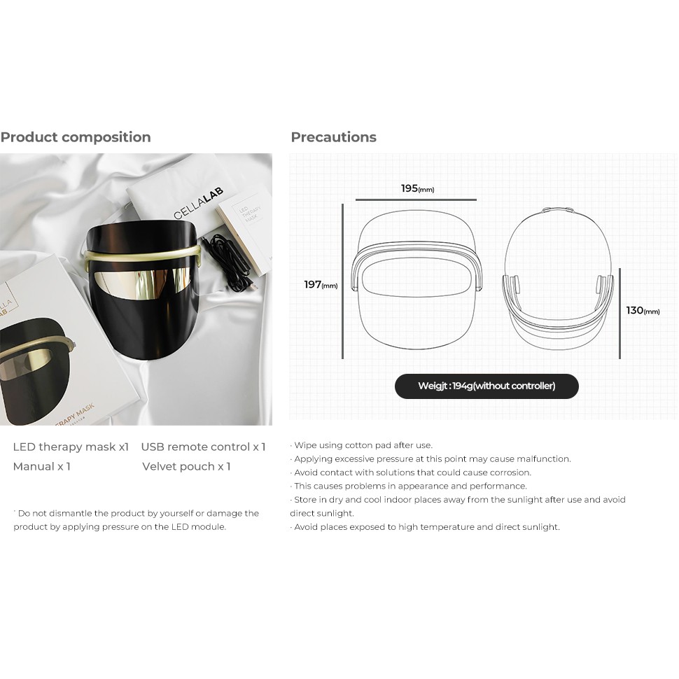 Authentic Cellalab Cellular LED Therapy Mask - Korean Light Photon Therapy Mask for Skin Rejuvenation I Acne Treatment