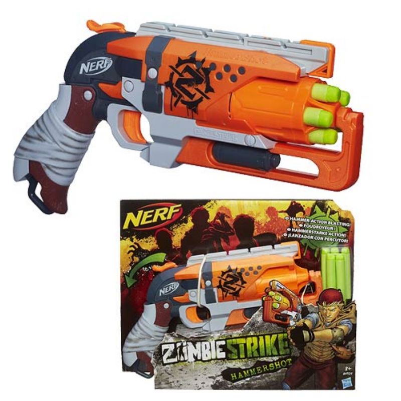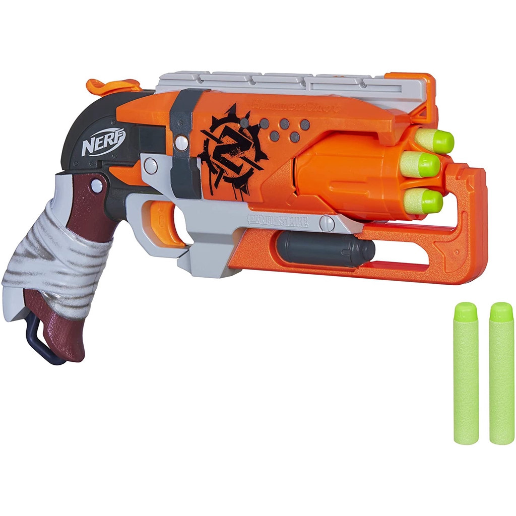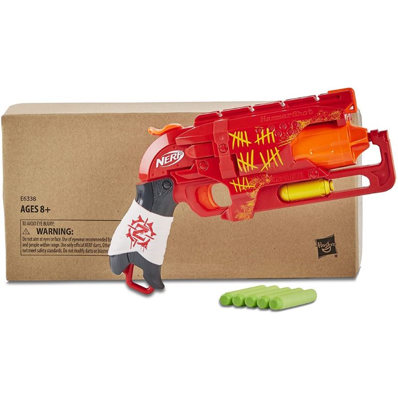 Authentic NERF Zombie Strike Hammershot Blaster Pull-Back Hammer-Blasting Action, 5 Official Nerf Zombie Strike Darts