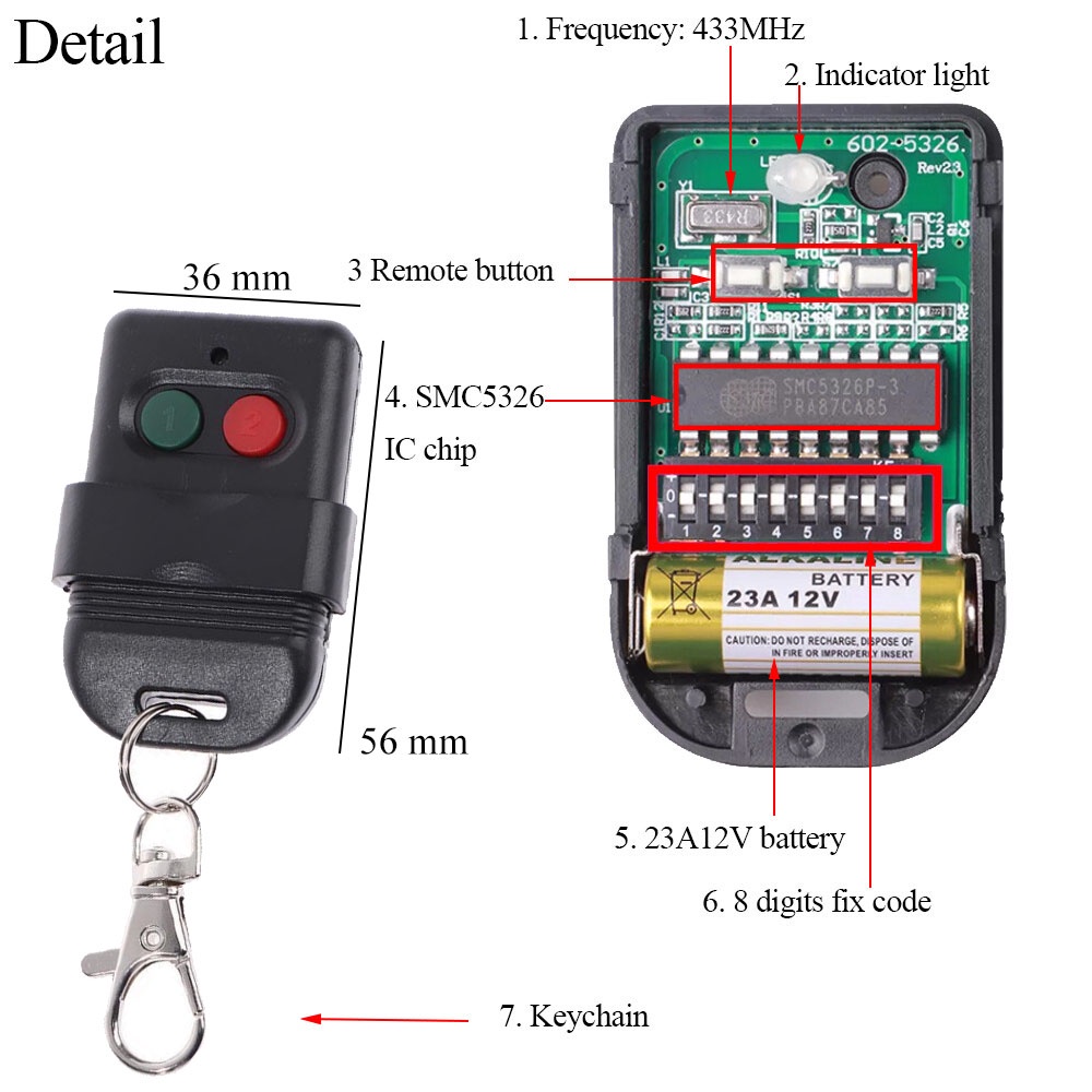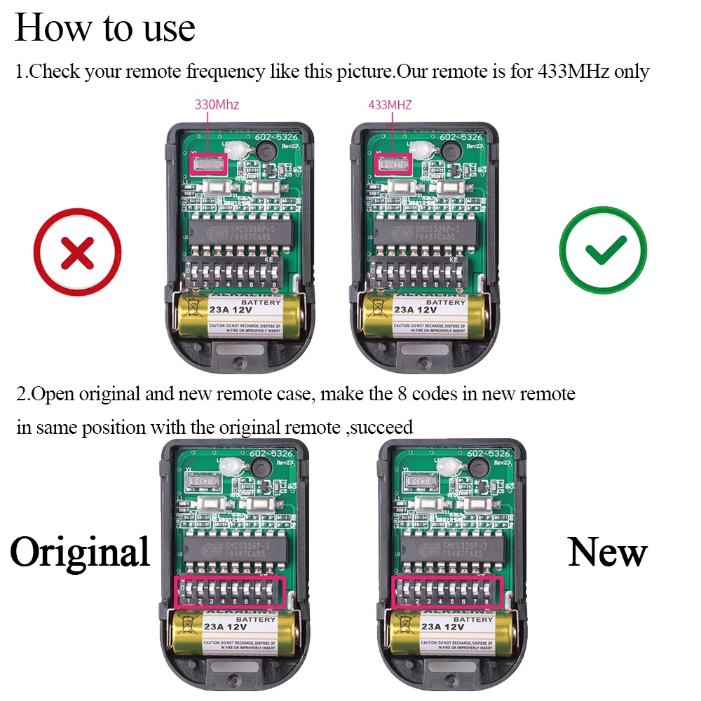 Auto Gate Remote Control 433MHz SMC 5326 8 Digits Duplicator Wireless Controller (Battery Include)