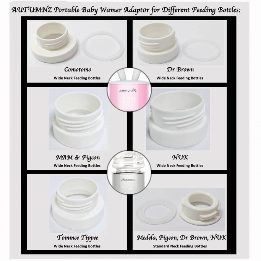Autumnz Portable Baby Bottle Warmer - (adaptor for Pigeon, Dr Brown, NUK, Tommee Tippee, MAM, etc)