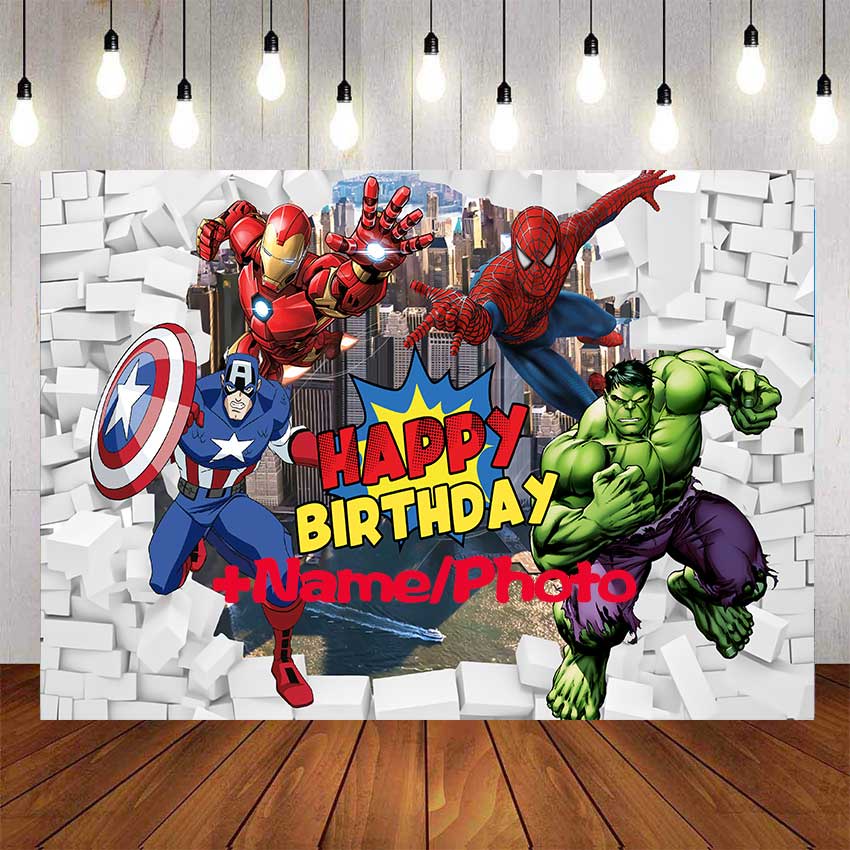 Avengers Superheros Birthday Backdrop For Children Photography Baby Shower Kids Birthday White Bricks Background Birthday Party Decor Custom Name Photo