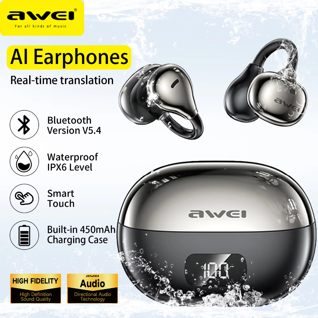 AWEEI TZ50 AI Translation Headphones Wireless Bluetooth Noise Reduction Call Earbuds Office Travel Real Time Translate