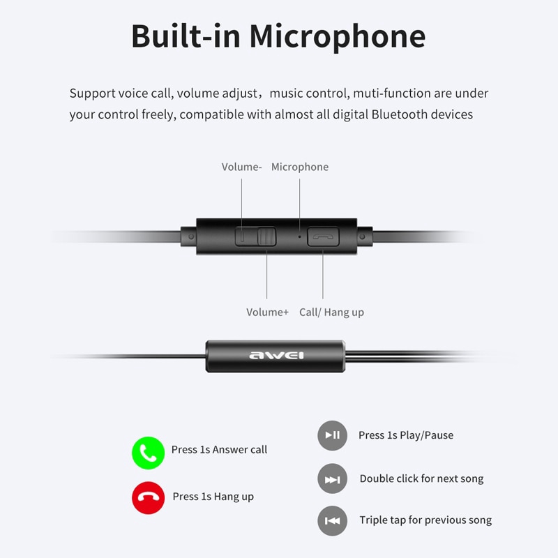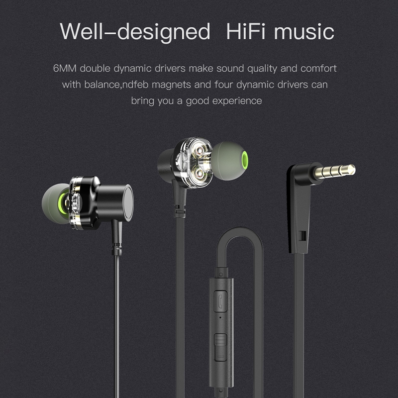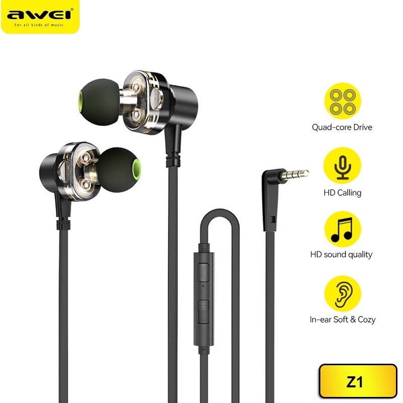 Awei Z1 Wired Earpiece 3.5mm Sport Earphones Bass Dual Drivers with Mic
