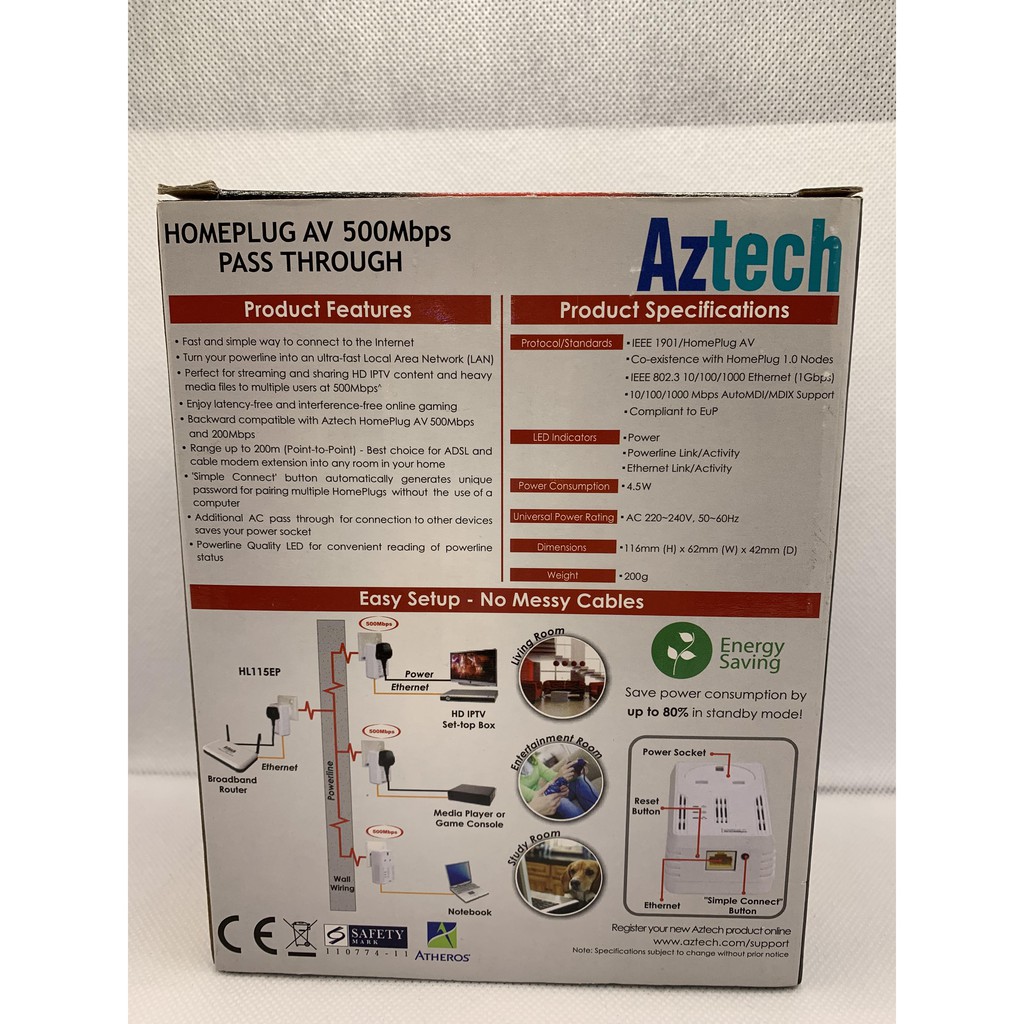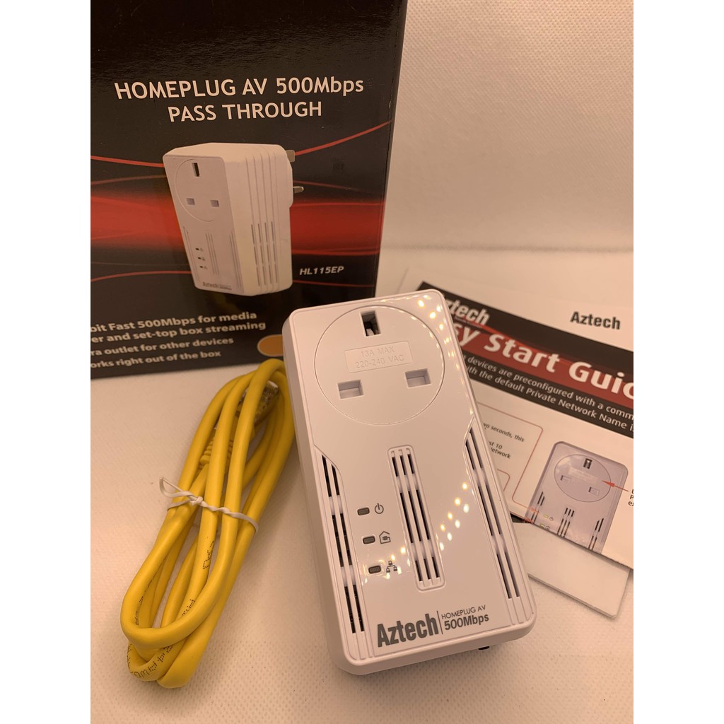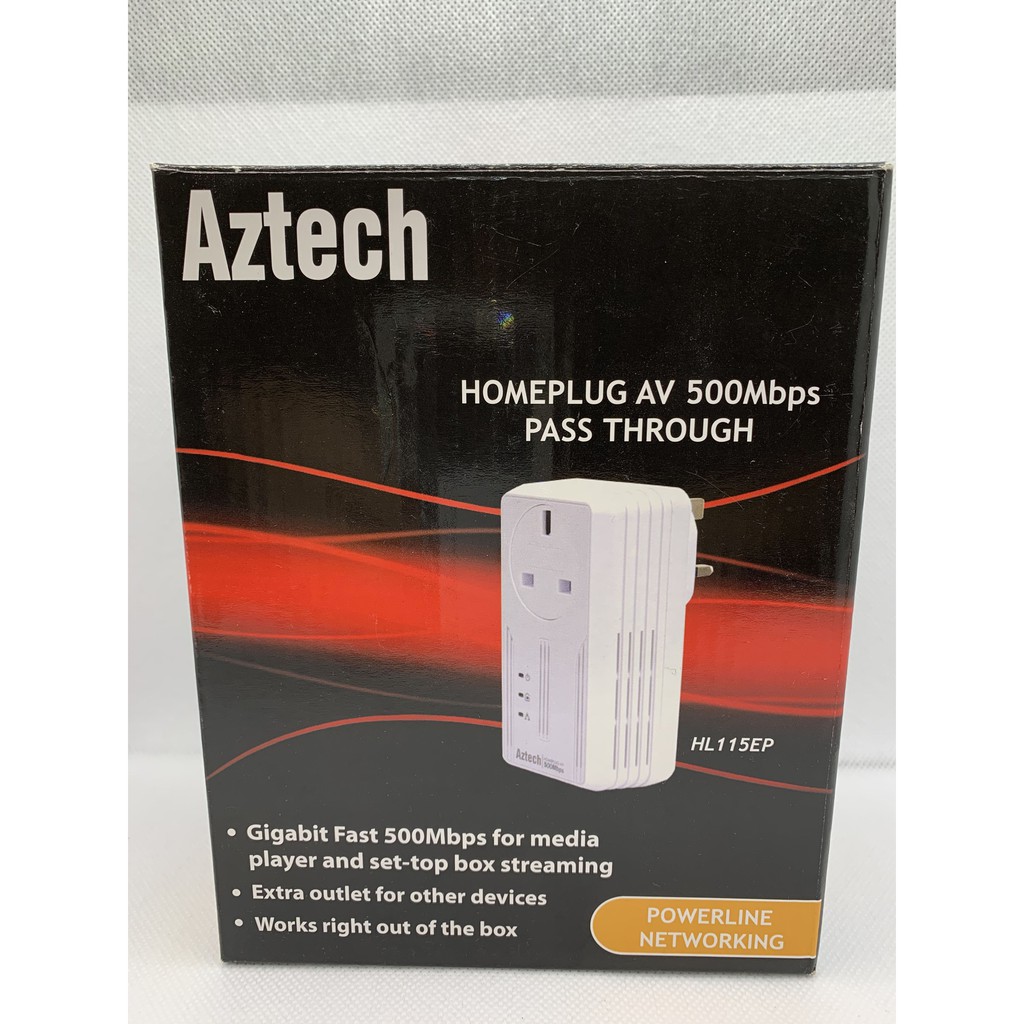Aztech HL115EP HomePlug AV 500Mbps with AC Pass-Through Powerline Networking