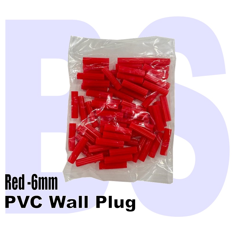 BANSOON PVC Wall Plug. Red 6mm. Green 7mm. Sold per pack. Plastic Wall Plug