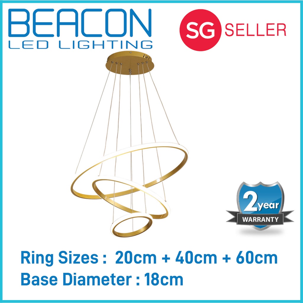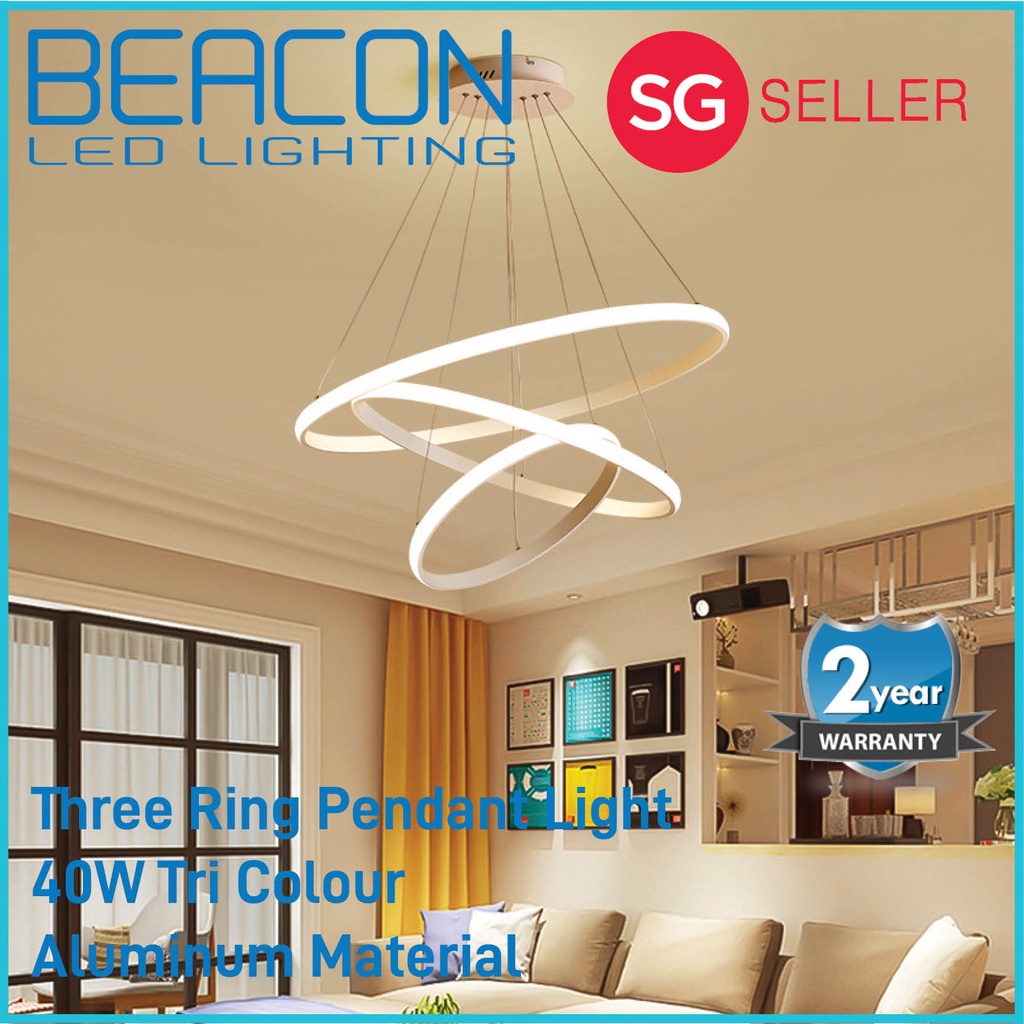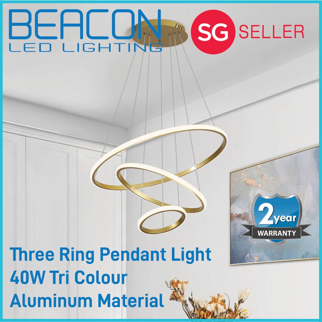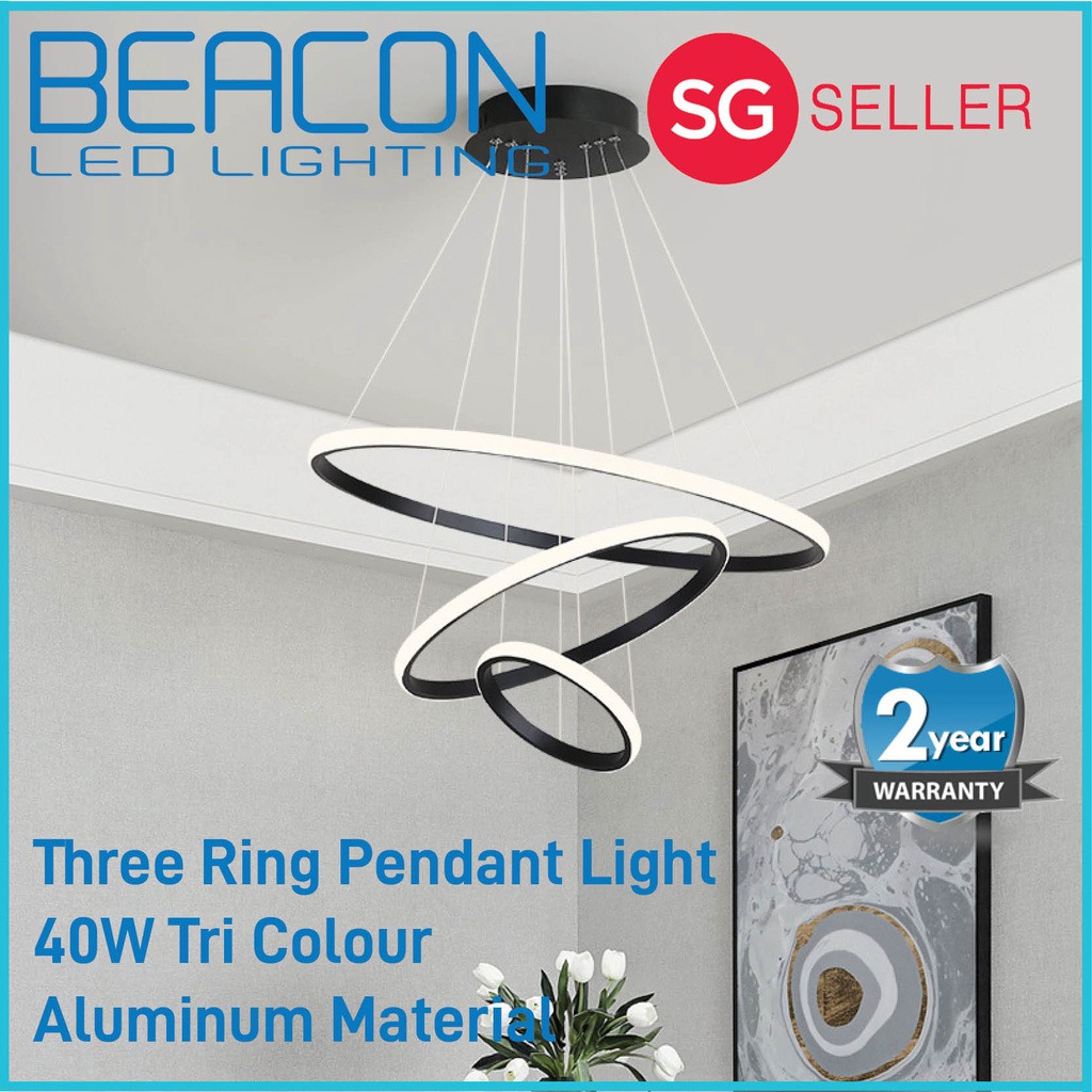 BEACON LED (LOCAL SELLER WITH WARRANTY) Ring Pendant Light - 40W Tri Colour - 20cm + 40cm + 60cm - Multiple Hanging