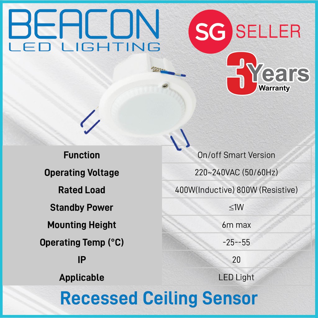 BEACON LED Lighting Sensor - Surfaced mounted / Recessed Ceiling Mounted - 3 YEARS LONGEST WARRANTY (longest in market)