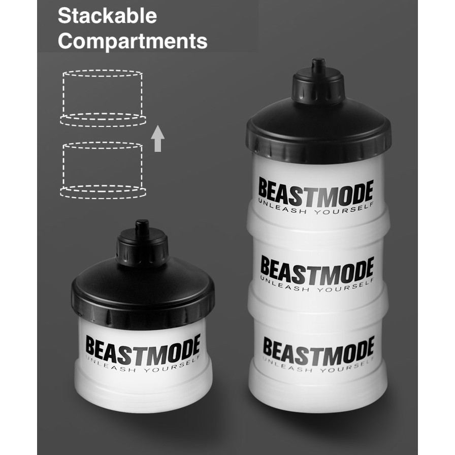 Protein Powder Container Storage Stackable Supplement - BEASTMODE Travel Portable Gym Use