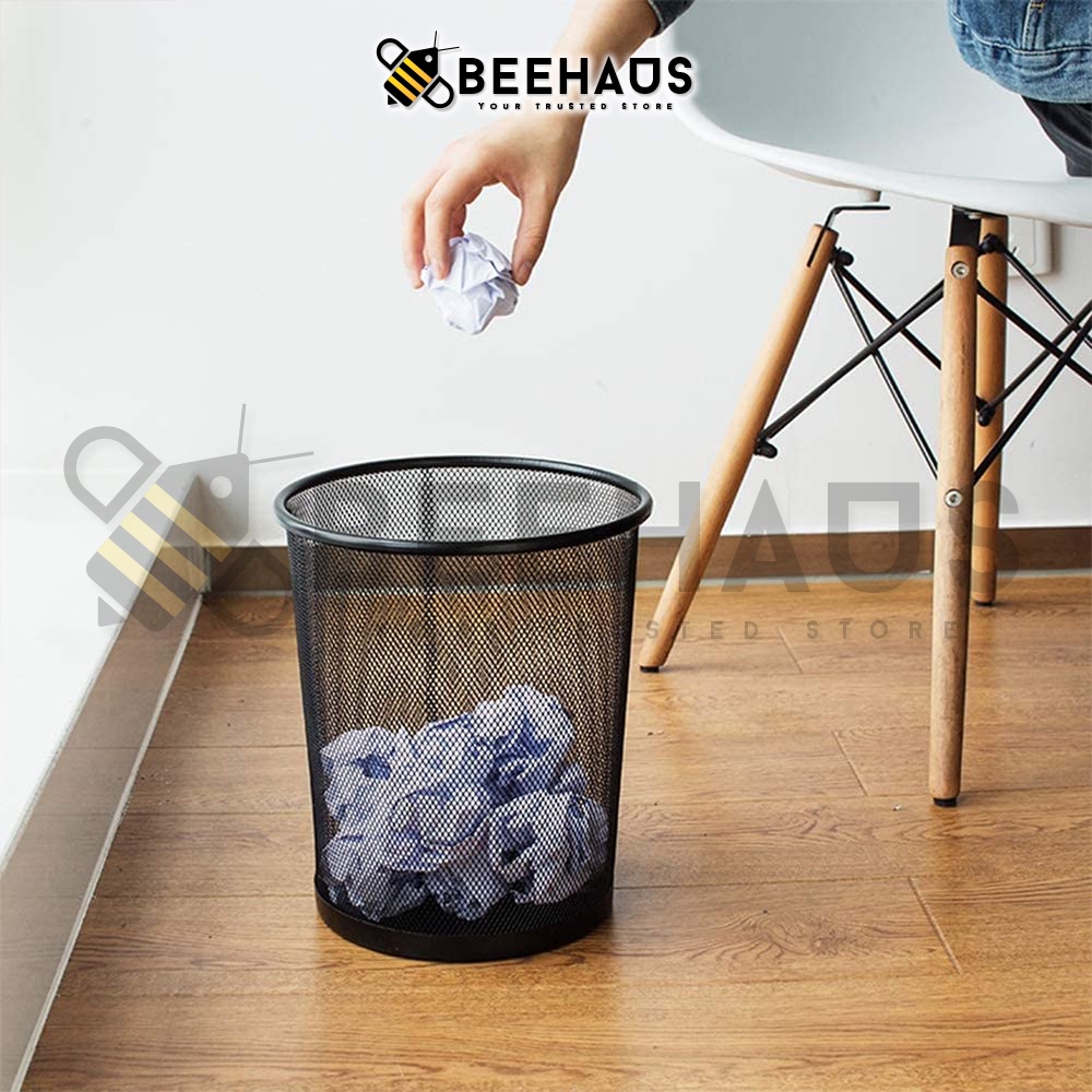 BEEHAUS Metal Mesh Dustbin | Wire Mesh Trash Can Waste Basket Garbage Bin Rubbish Bin Waste Container | Tong Sampah