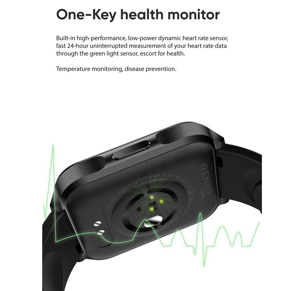 BENIO Lark Smart Watch Fitness Tracker with 23 Sport Modes Heart Rate Monitoring SaO2 Sensor IP67 Waterproof (1.69")