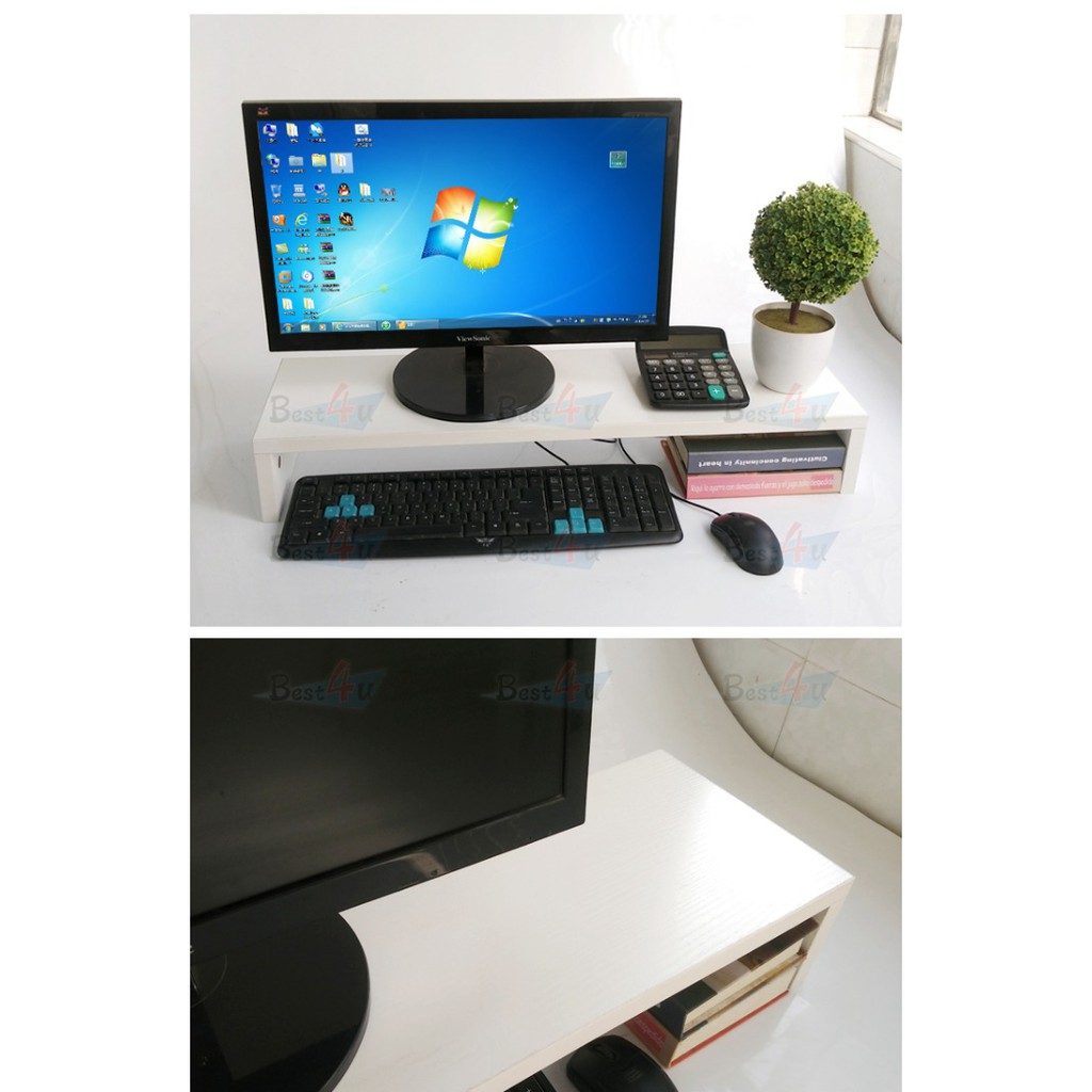 BEST4U 55/70CM Wooden Monitor Stand | Dual Monitor Stand | PC Stand | Desktop Monitor Riser with Keyboard Mouse Storage