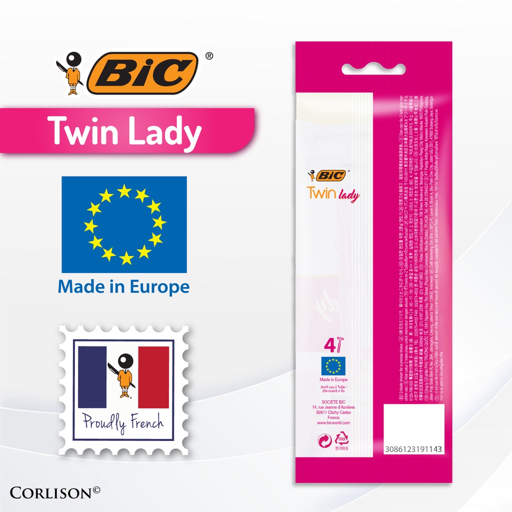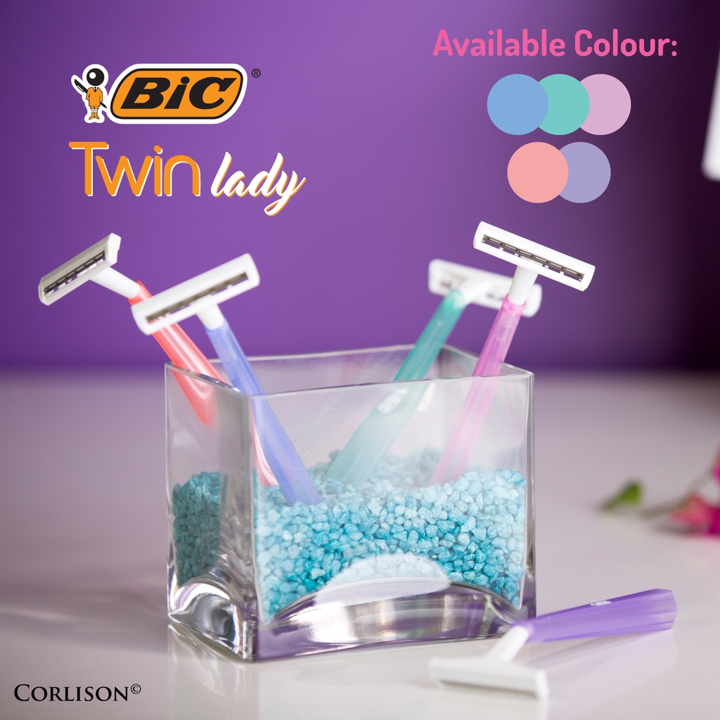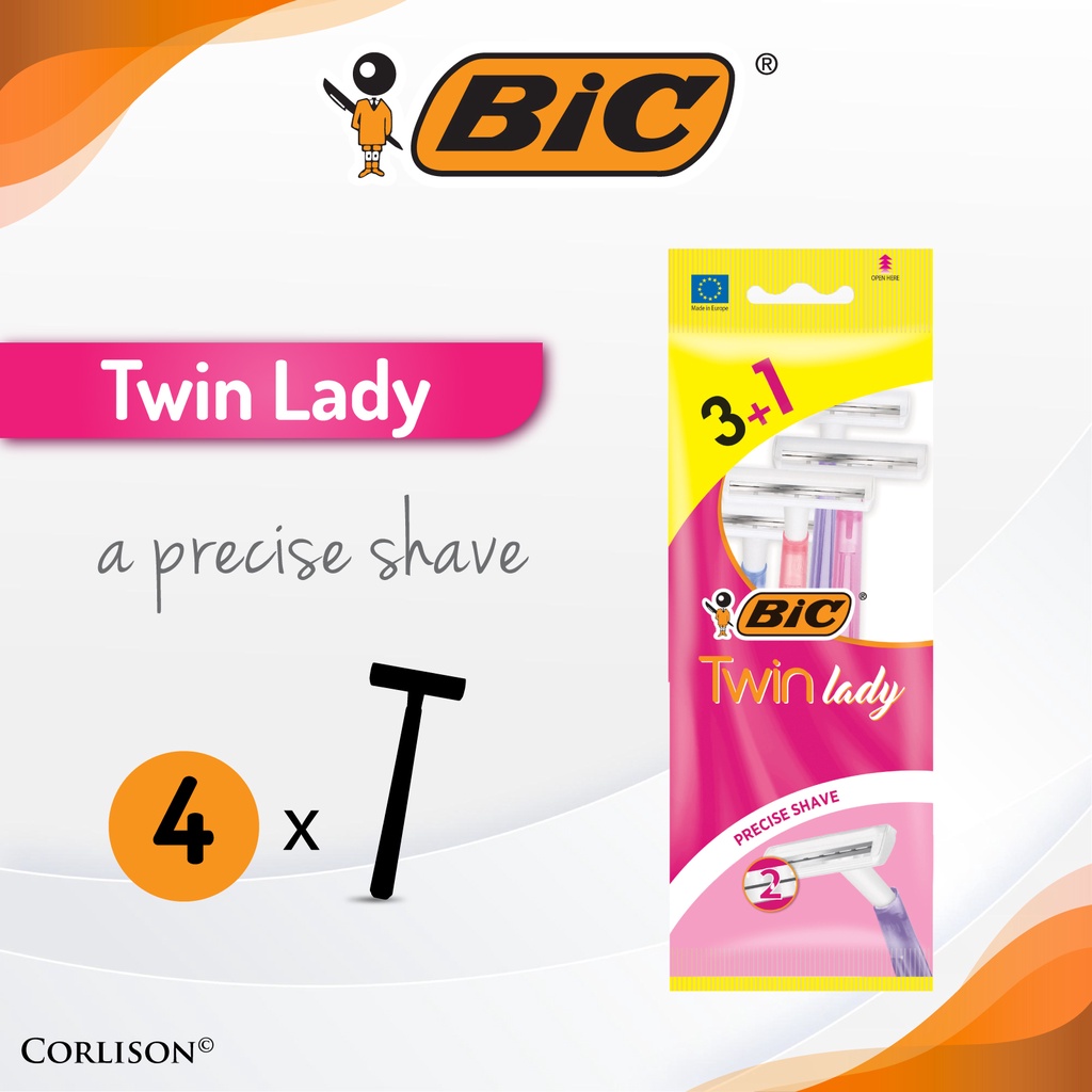 BIC Twin Lady Women's Disposable Razor - Twin-Blade, Non-Pivoting Head, Springtime Pastel Colors, Pack of 4 (3+1 Free)