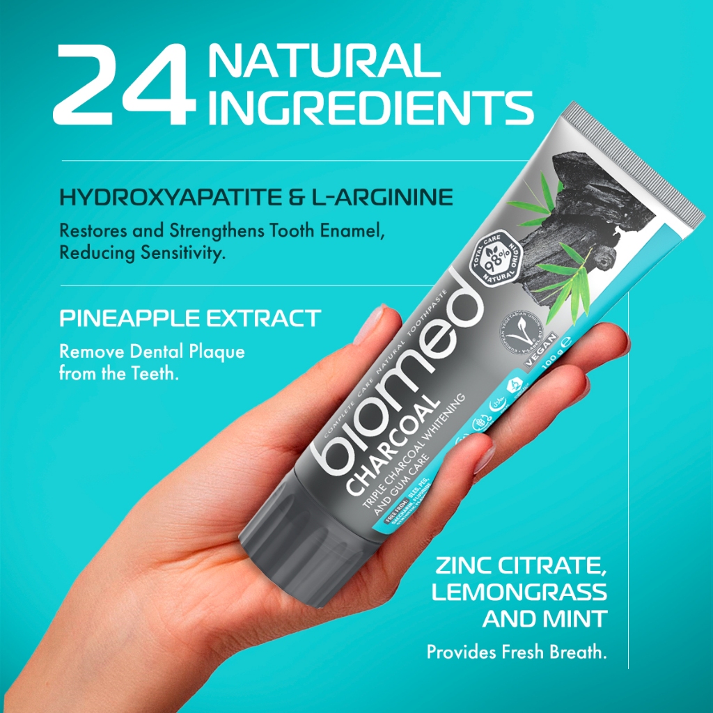 Biomed Natural Toothpaste CHARCOAL 100g | For Whitening & Gum Care, Fresh Breath, Fluoride Free