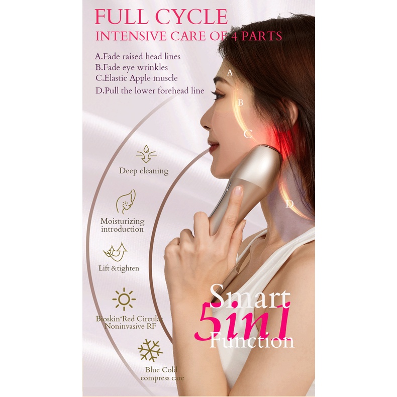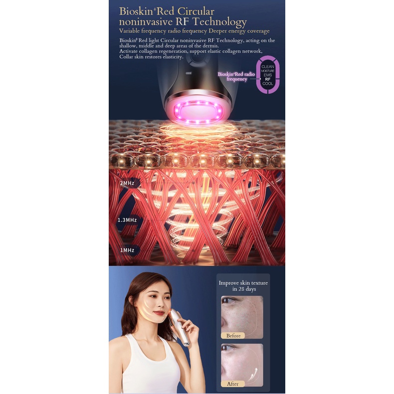 BIOSKIN Smart RF Beauty Device EMS Face Lifting Facial Mesotherapy Circular Noninvasive Radio Frequency Technology Red and Blue lights Hot Cool Skin Care Face Firming