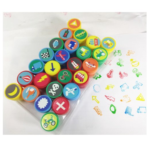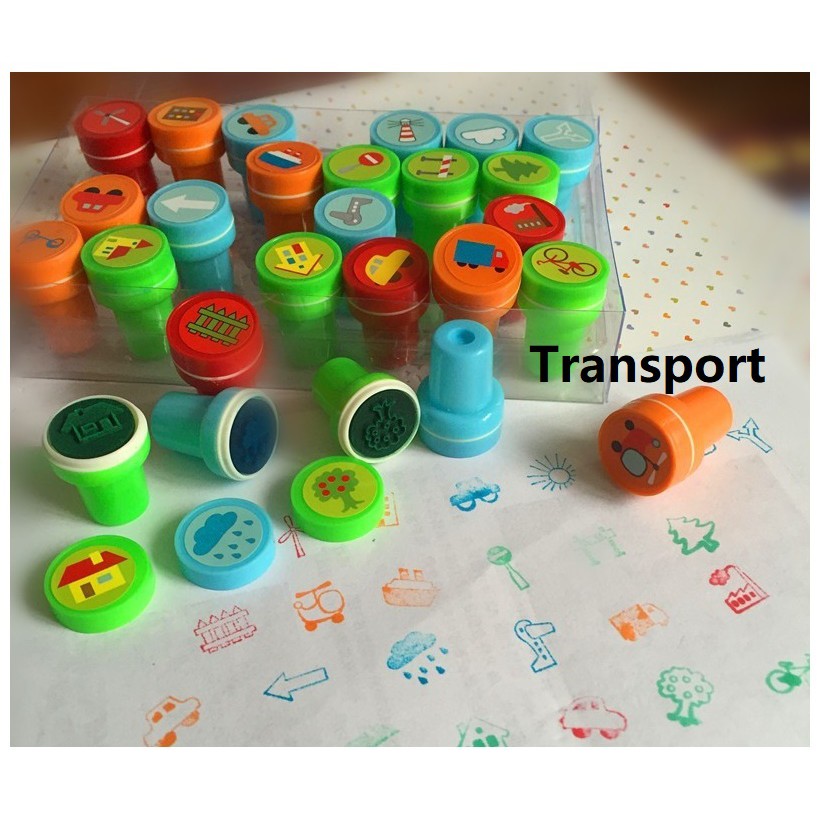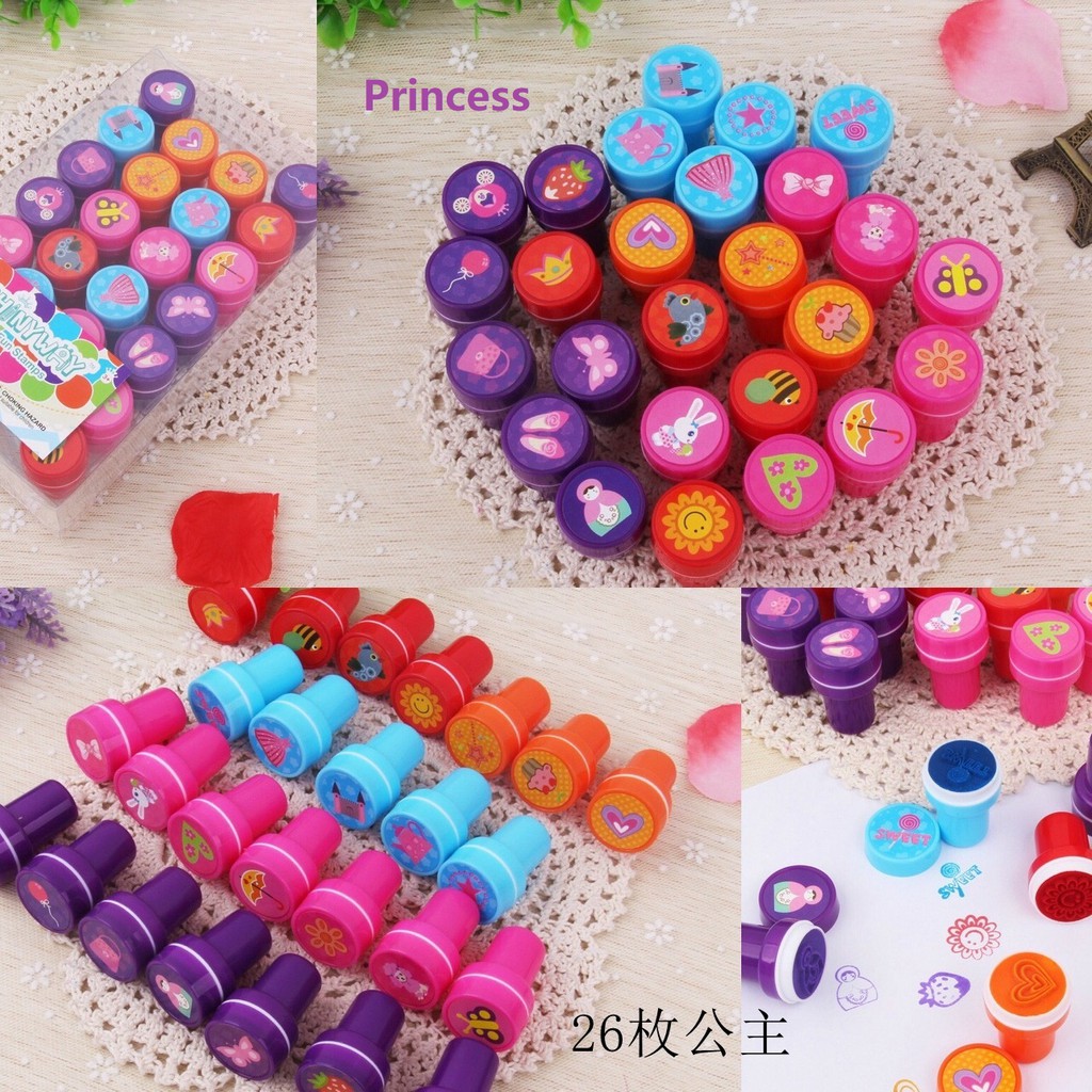 BKM053 Kids SELF-INK Stamp Set 26pcs Stamp Set Xmas Alphabet Transport Princess Art & Craft Assorted Design