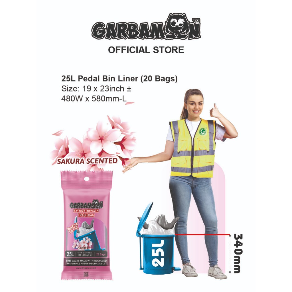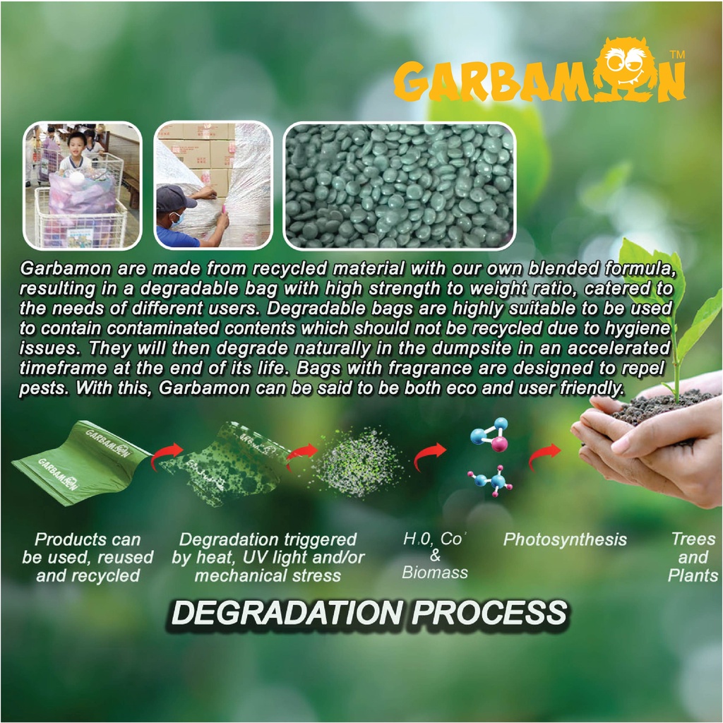 BMS Garbamon Heavy duty degradable lemongrass scented trash bags 25L/ 60L/ 90L/120L