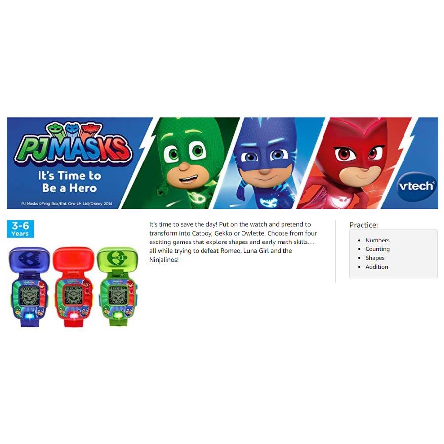 BNIB: VTech PJ Masks Super Learning Watch Owlette Gekko Catboy