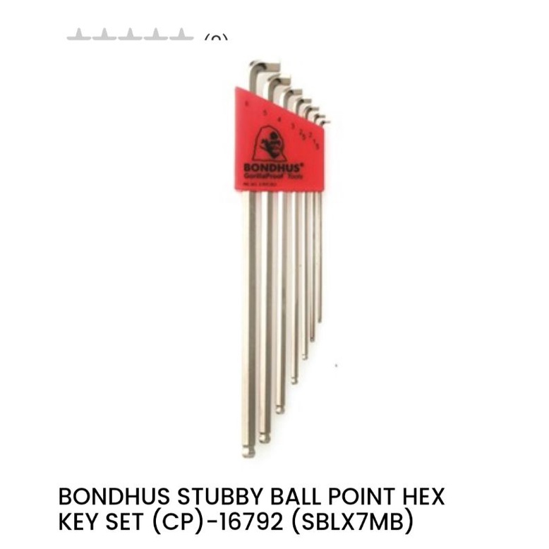 BONDHUS Stubby Ball Point Metric Hex Key Set