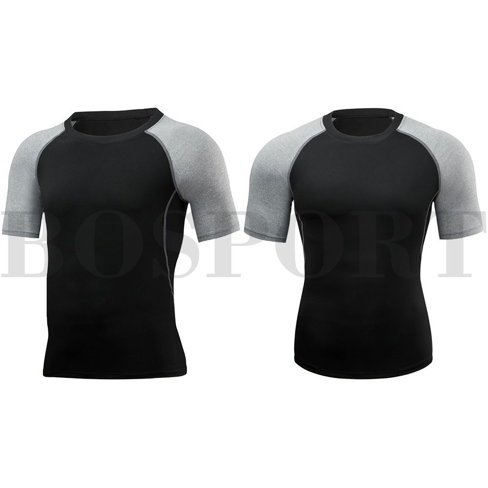 BOSPORT Men`s Compression T-Shirts Short Sleeve Top Sport Running Shirts Fitness Quick Dry Lightweight Gym