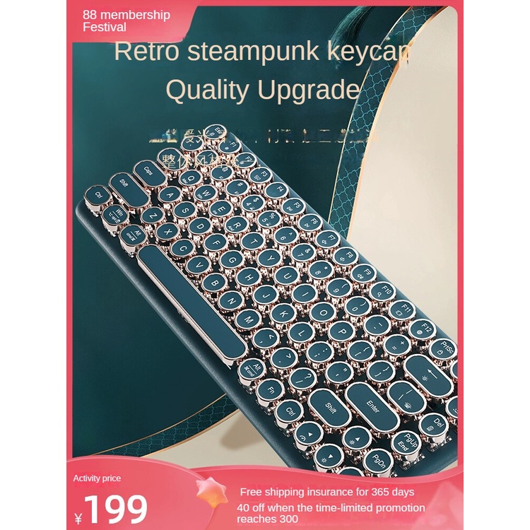 BOW Steampunk Mechanical Keyboard Wireless Bluetooth 3 Mode Vintage Wired Small Typewriter Hot Swap Notebook