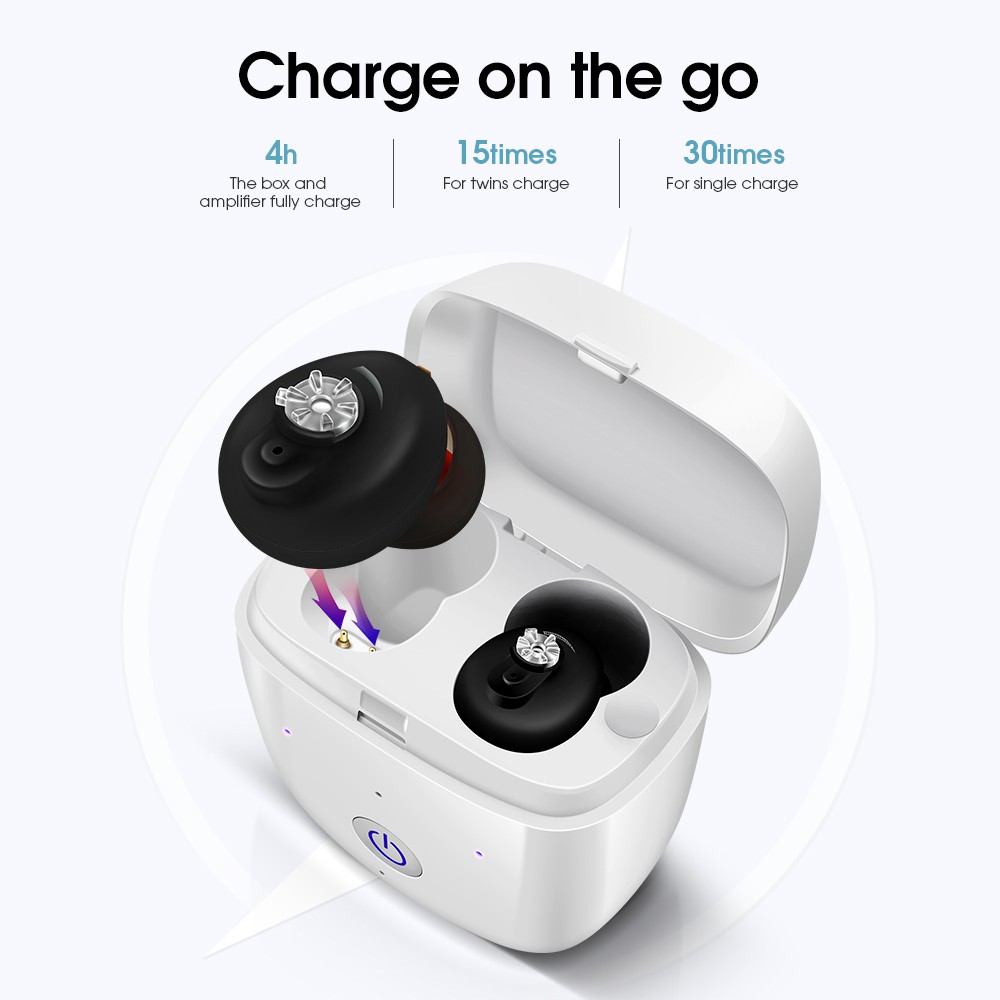 BRITZGO Hearing Aid Rechargeable Hearing Amplifier Mini Hearing Aid with Portable Charging Case VHP-611 Black Set Of One Or Set Of Two