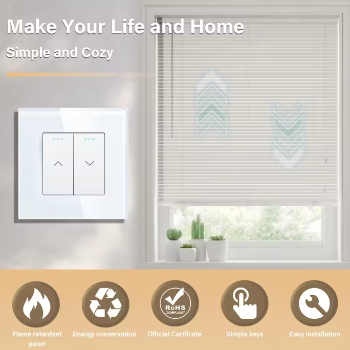 BSEED Mechanical Curtain Switch Electric Roller Shutter Switch Push Button Wall Blinds Switch Glass Frame