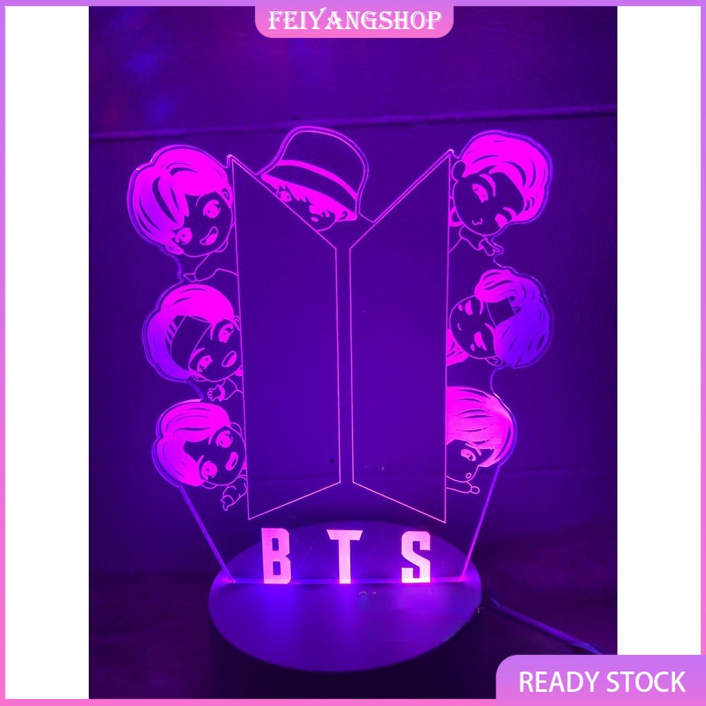 BTS LED Lamp Night Light Bangtan Boy Change Touch Remote Control Decor Lamp 3D Desk