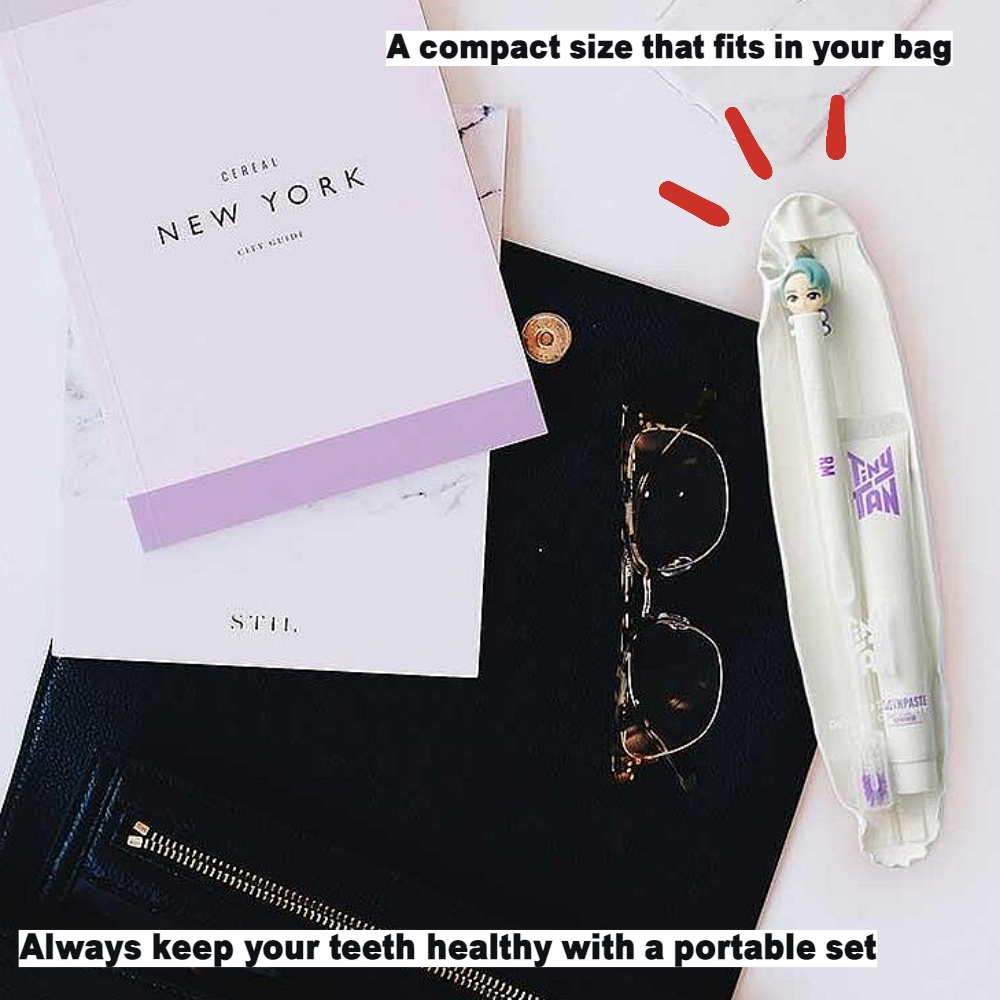 BTS Official Goods Character TinyTAN Dental Kit Toothbrush + Toothpaste + Pouch SET