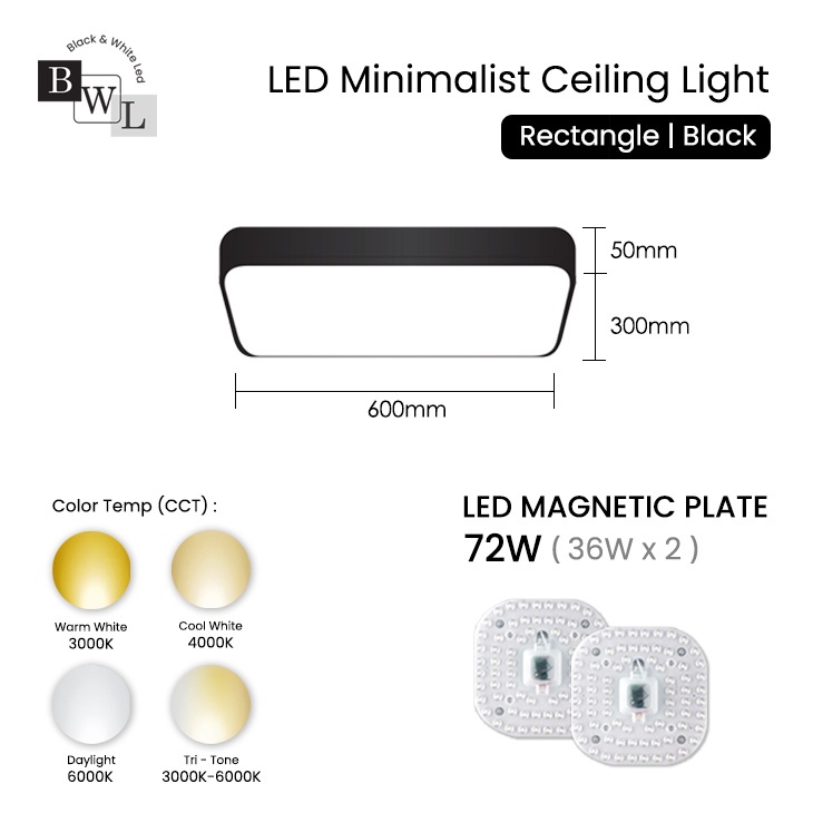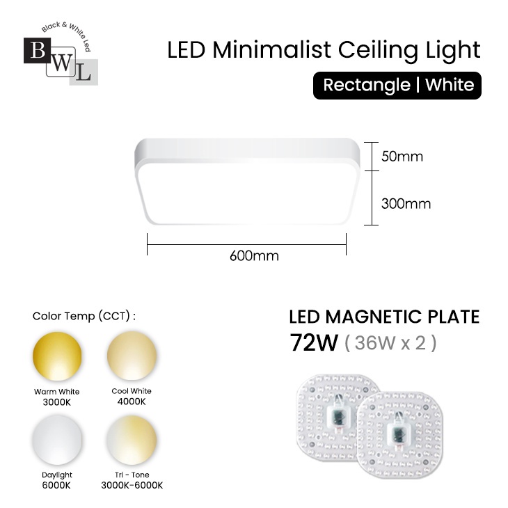 BWL LED Ceiling Light 600MM 60w/72W/96W/120W/140W Tri-Tone Rectangle Ceiling Light Living Room kitchen Light