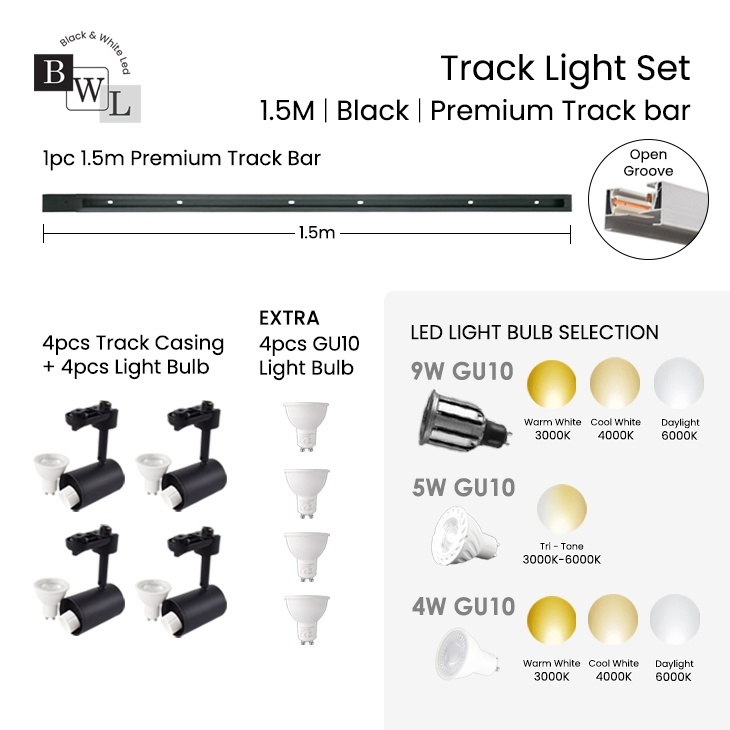 BWL LED LIGHT LED Track Light 4pcs Track Light With 1.5m Track Complete Set