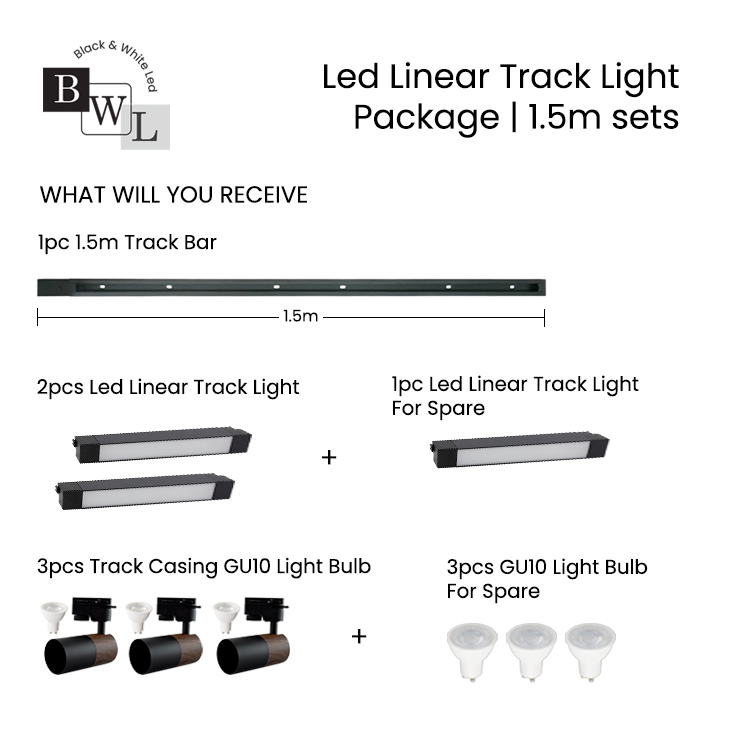 BWL LED LIGHT LED Wooden Track Light 3 pcs with Linear Track Light 2pcs 1.5m Track Complete Set