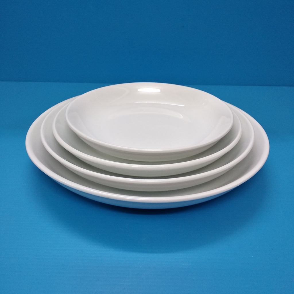 BYT White Porcelain 7", 8", 9" & 10" Round Flared Rice Plate Soup Noodle Plate Cake Dessert Plate
