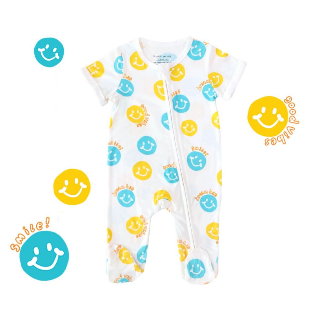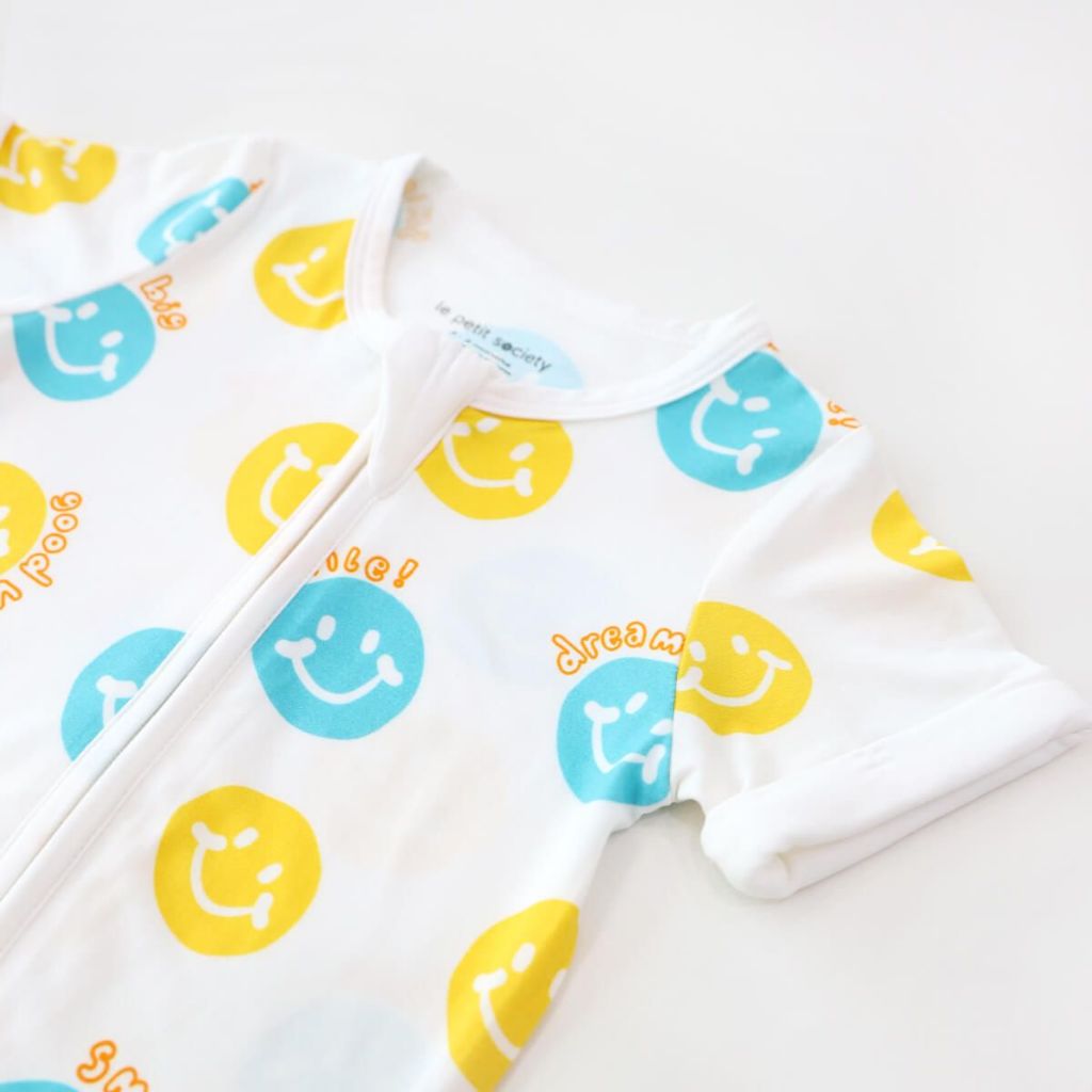 Baby Bamboo Short Sleeves Sleepsuit in Smiley Print