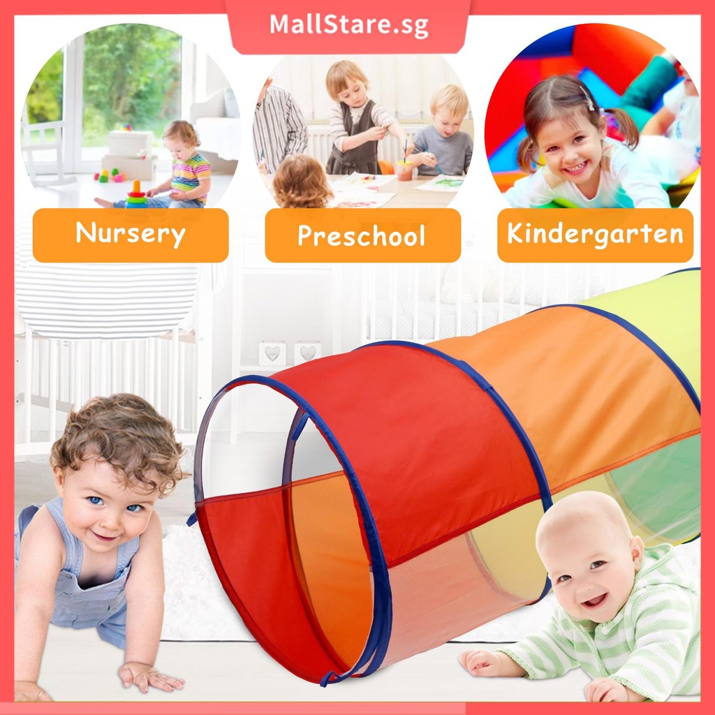 Baby Crawl Tunnel 6FT Foldable Crawl Through Tunnel Play Tent Colorful Crawl Tunnel Playhouse with Clear Mesh for Kids Pet SHOPSKC6334