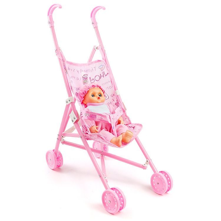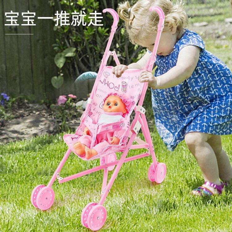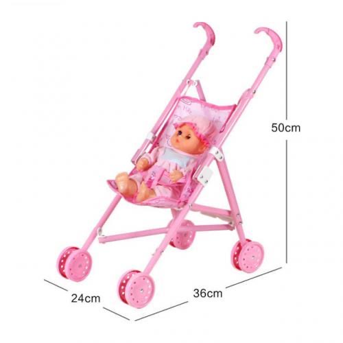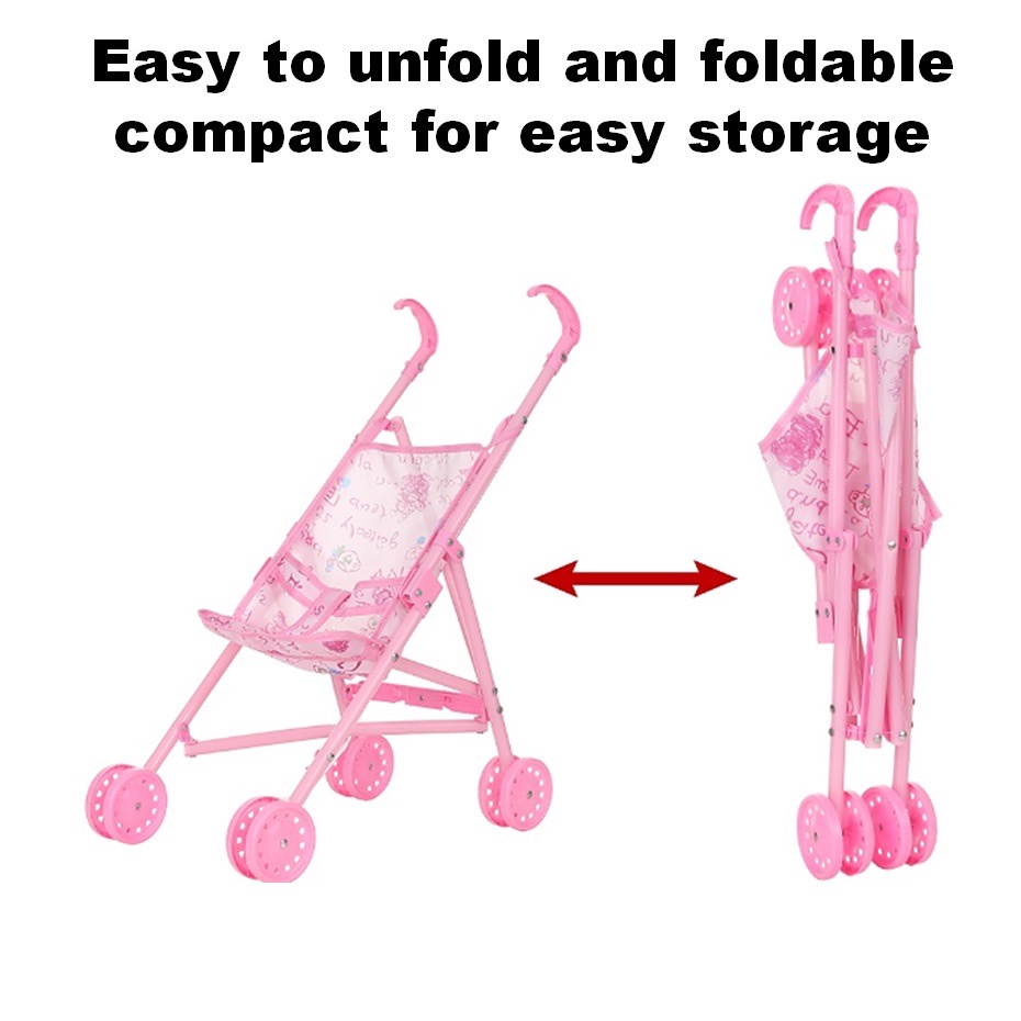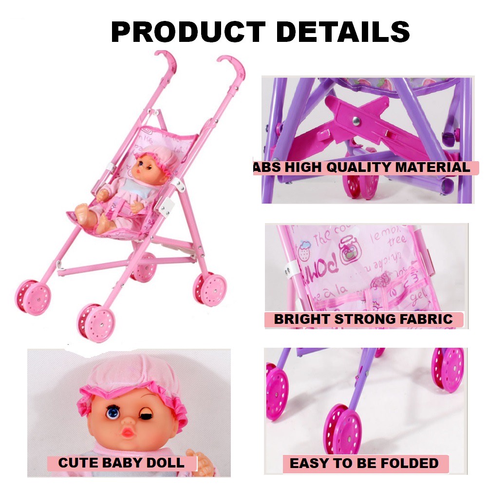 Baby Dolls Stroller Pram Toys with Baby Doll Trolley Toy Pretend Play Stroller With Doll Carriage Foldable Pushchair Toy
